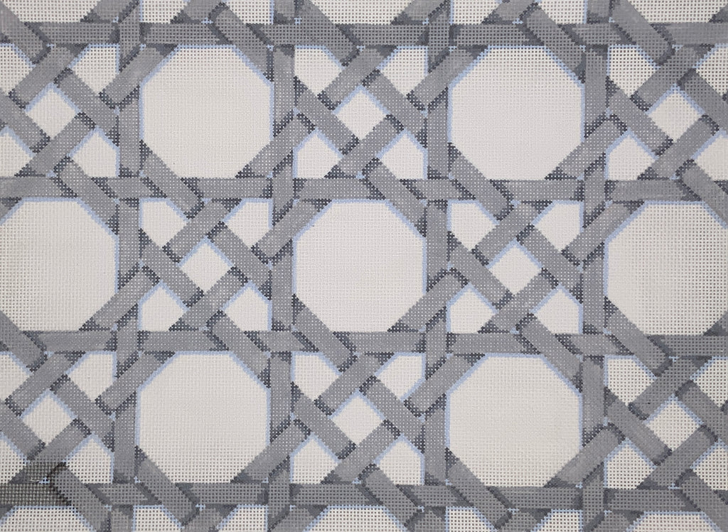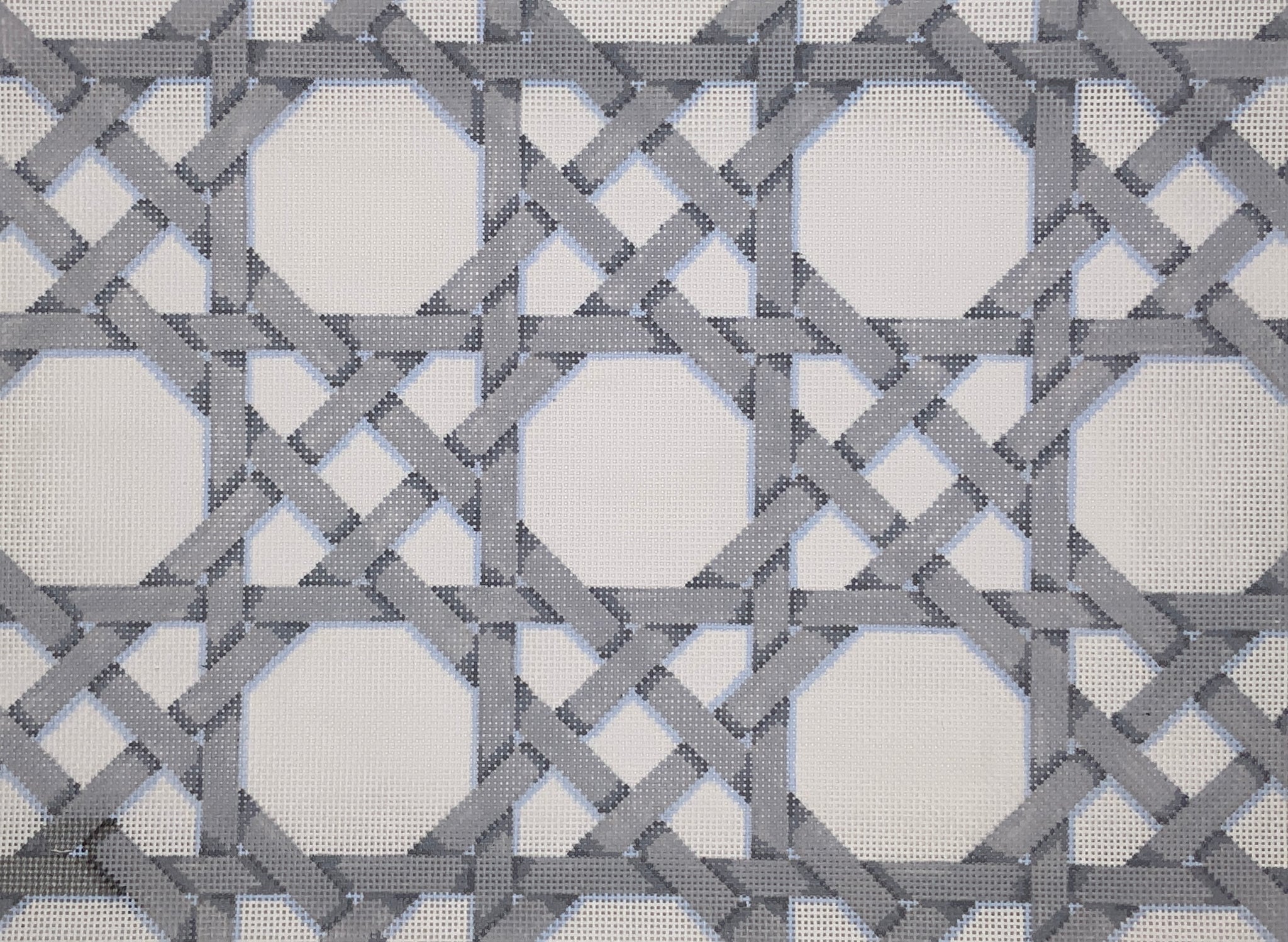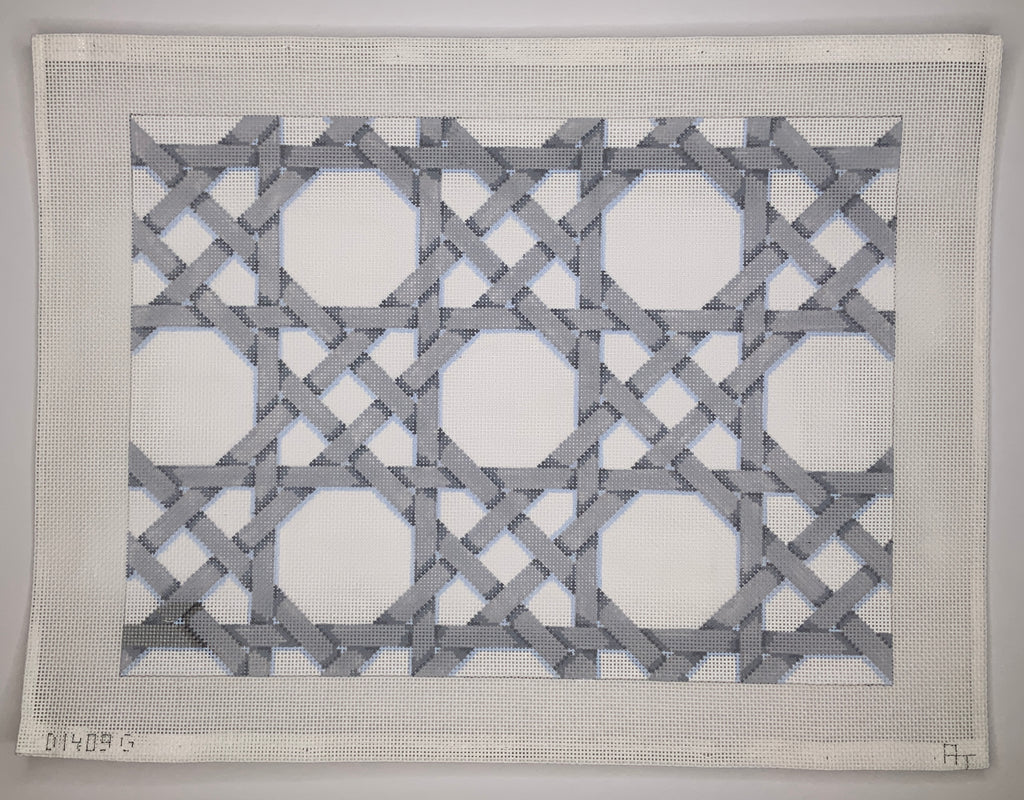 "Gray/Cream Caning Pattern Pillow" painted canvas by Associated Talents