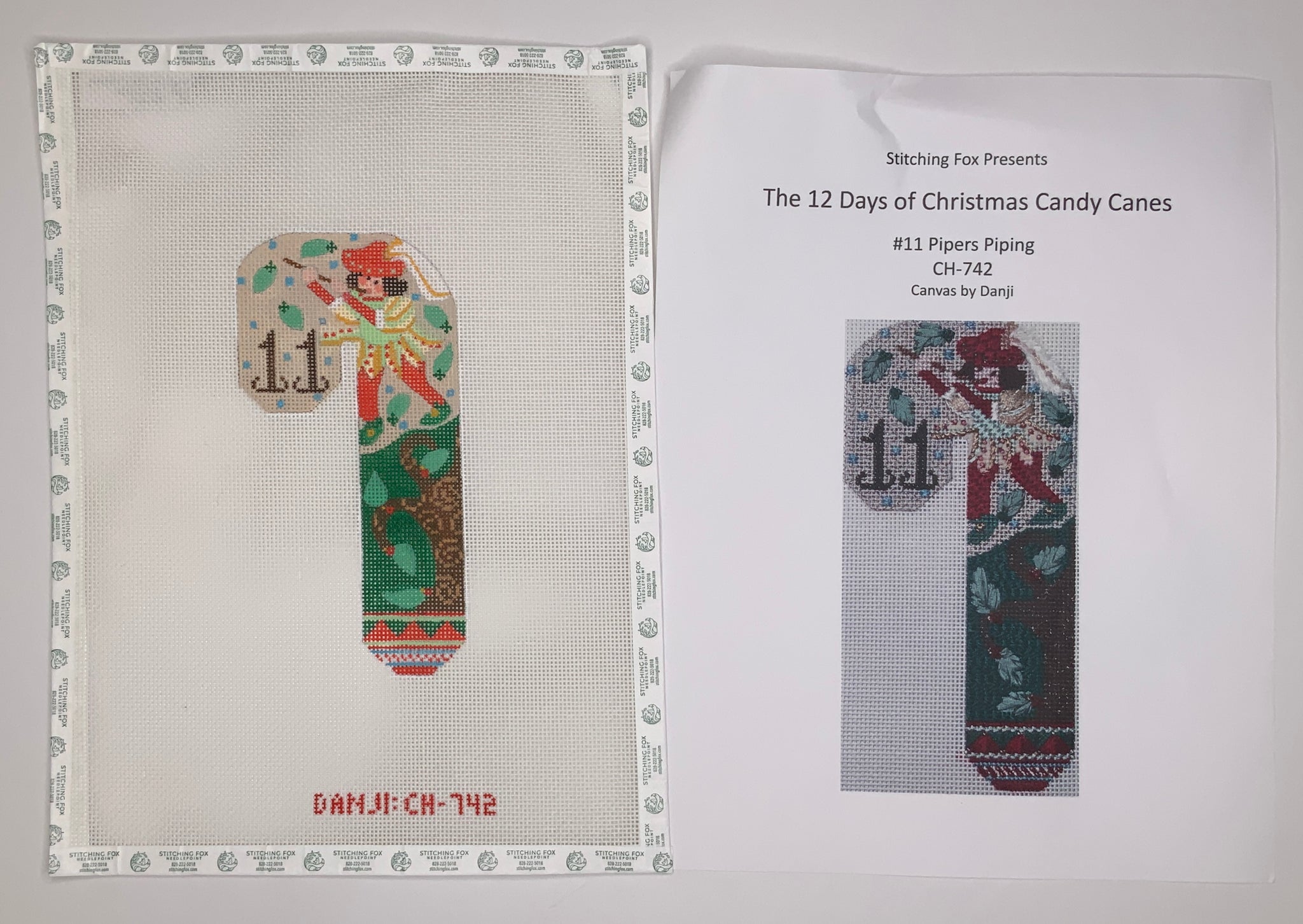 11 Pipers Piping Candy Cane with stitch guide