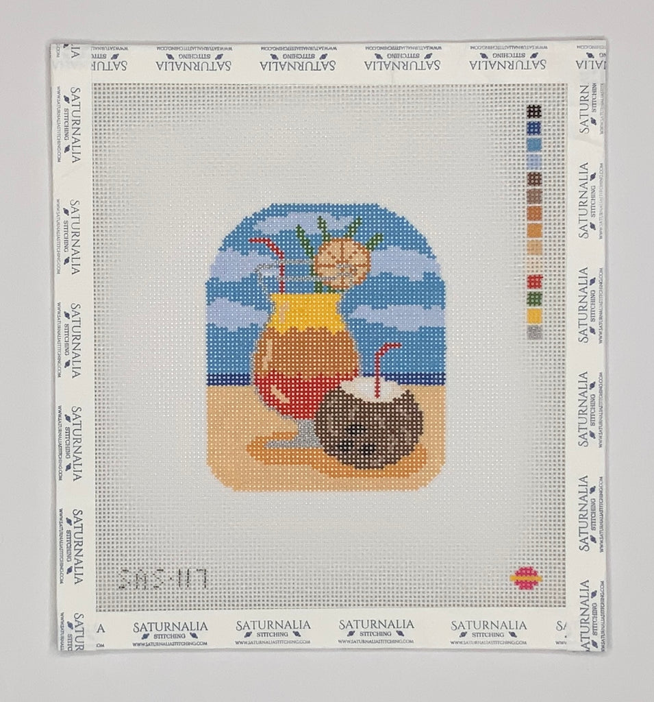 "Bevvies on the Beach" painted canvas by Saturnalia Stitching