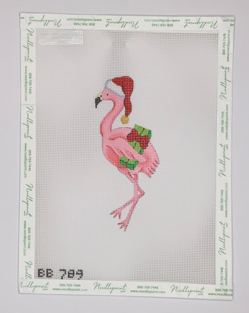 "Flamingo with Present and Santa Hat" painted canvas by Burnett & Bradley