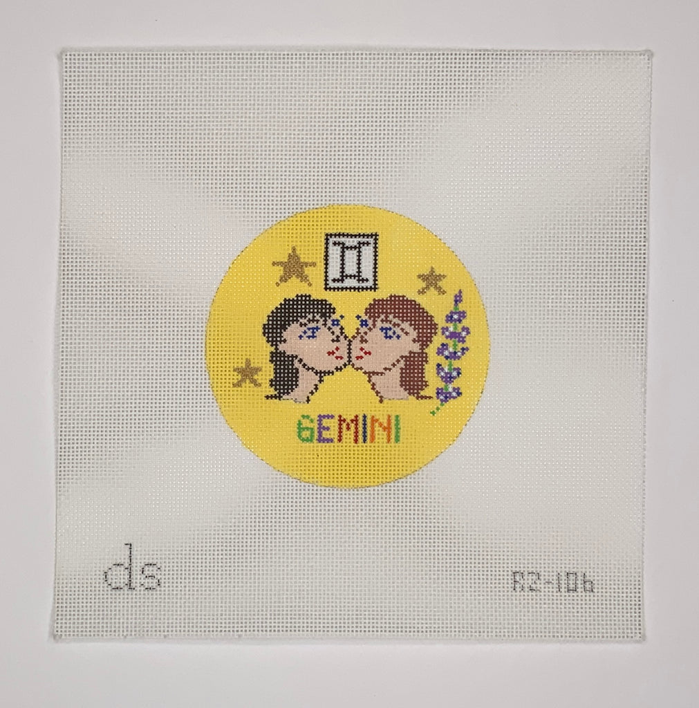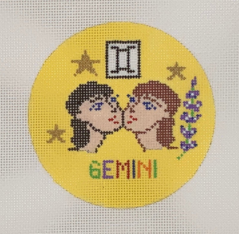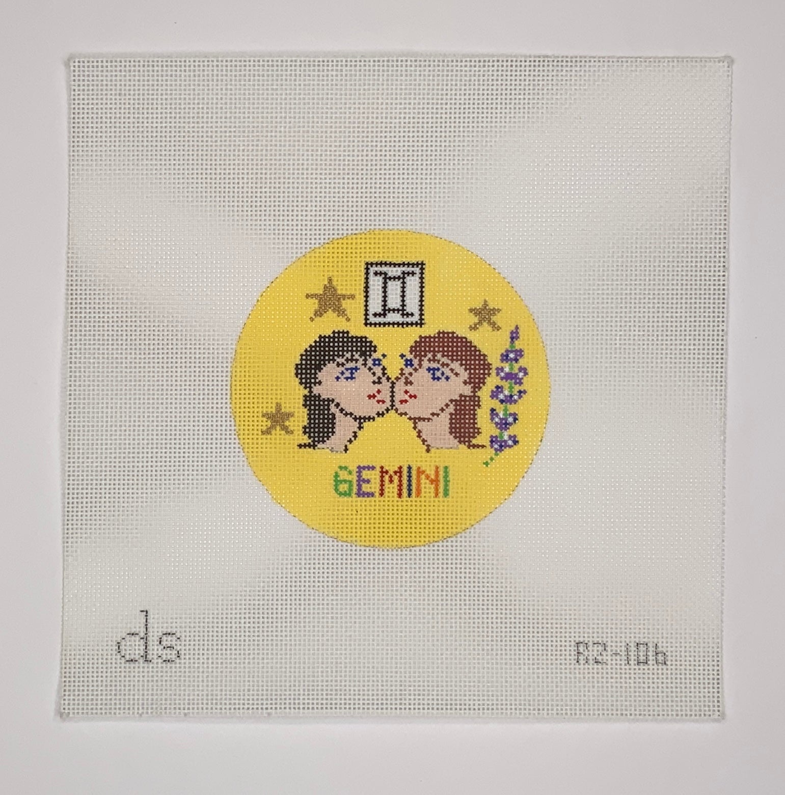 "Gemini Round" painted canvas by Doolittle Stitchery