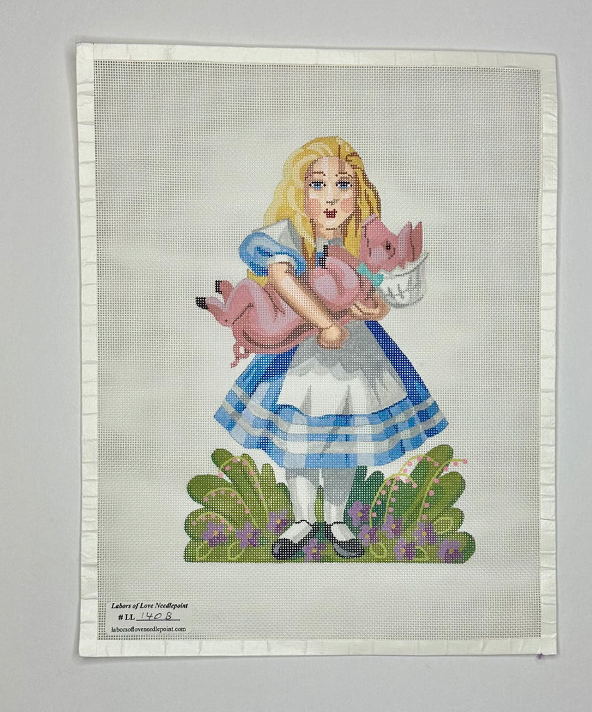 "Large Alice with Pig" painted canvas by Labors of Love