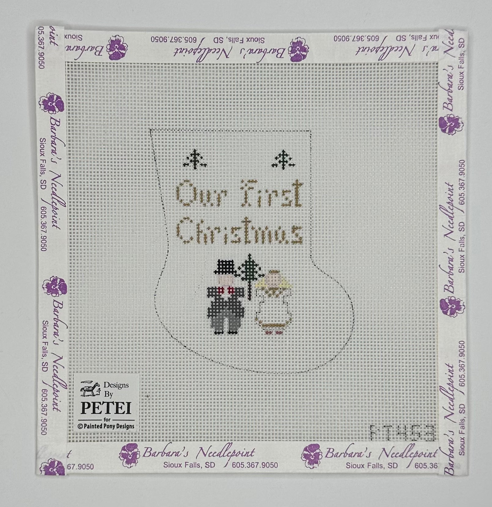 "Our First Christmas Mini Sock" painted canvas by Petei