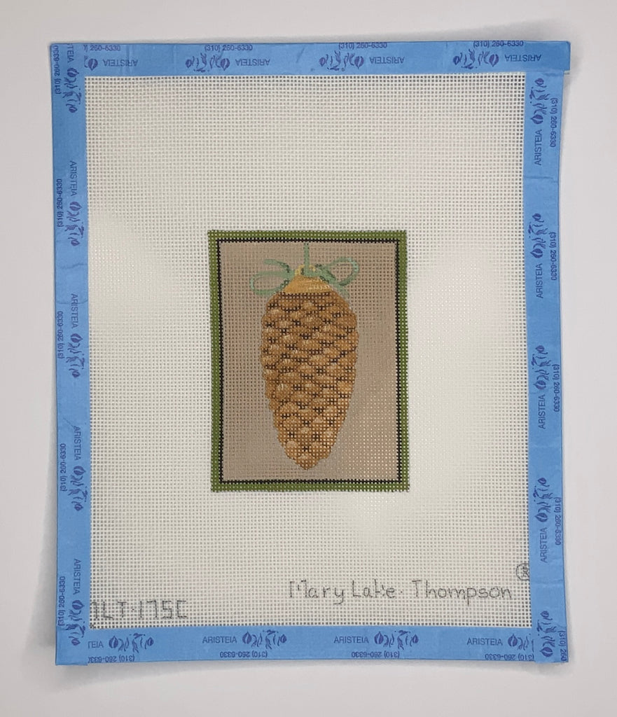 "Pinecone w/ Bow" painted canvas by Mary Lake Thompson