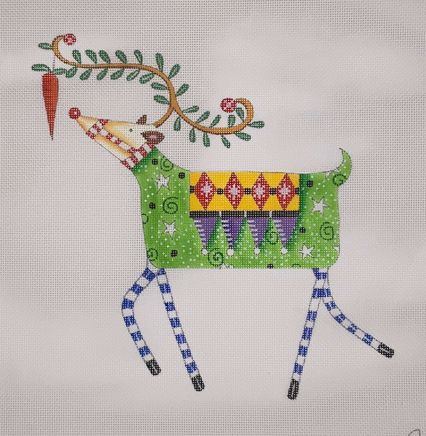 "Reindeer with Carrot" painted canvas by Maggie Co, artwork by Kim Bowles