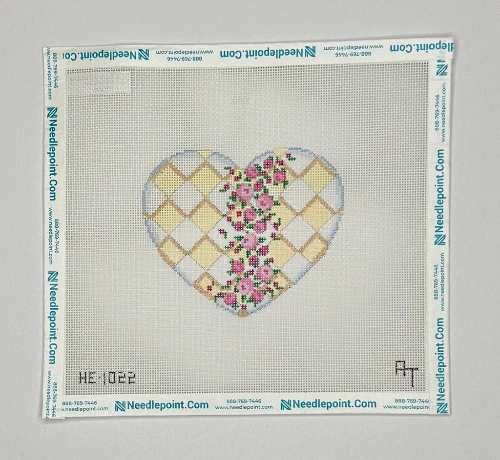 "Rosebud Harlequin Large Heart" painted canvas by Associated Talents
