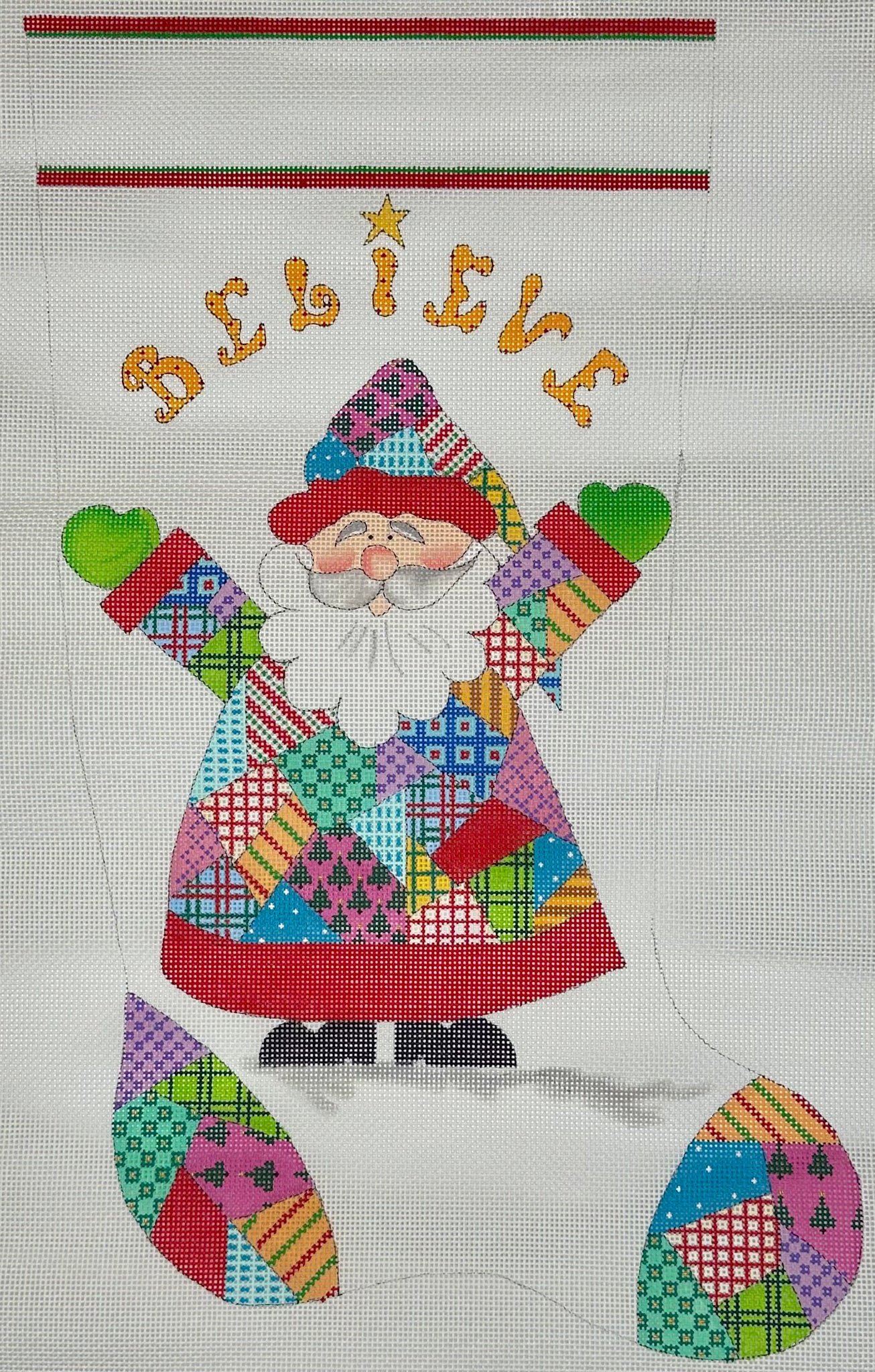 "Believe Santa Stocking" painted canvas by Renaissance Designs