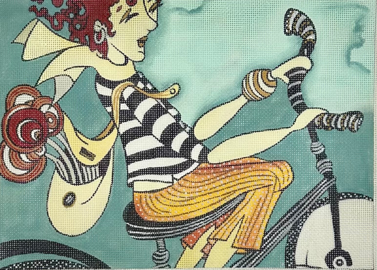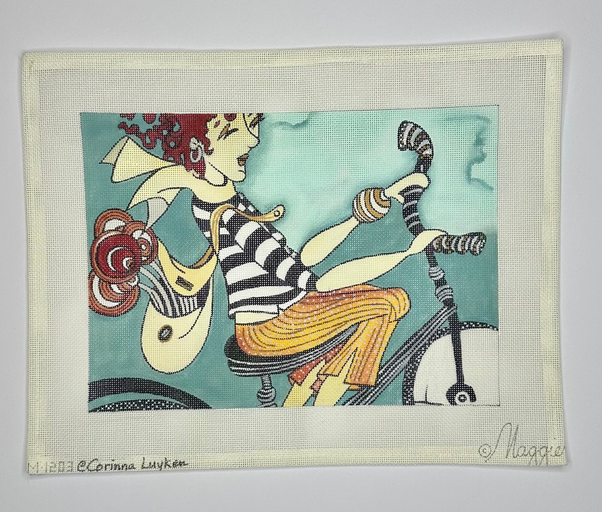 "Bicycle Girl" painted canvas by Maggie Co, artwork by Corinna Luyken