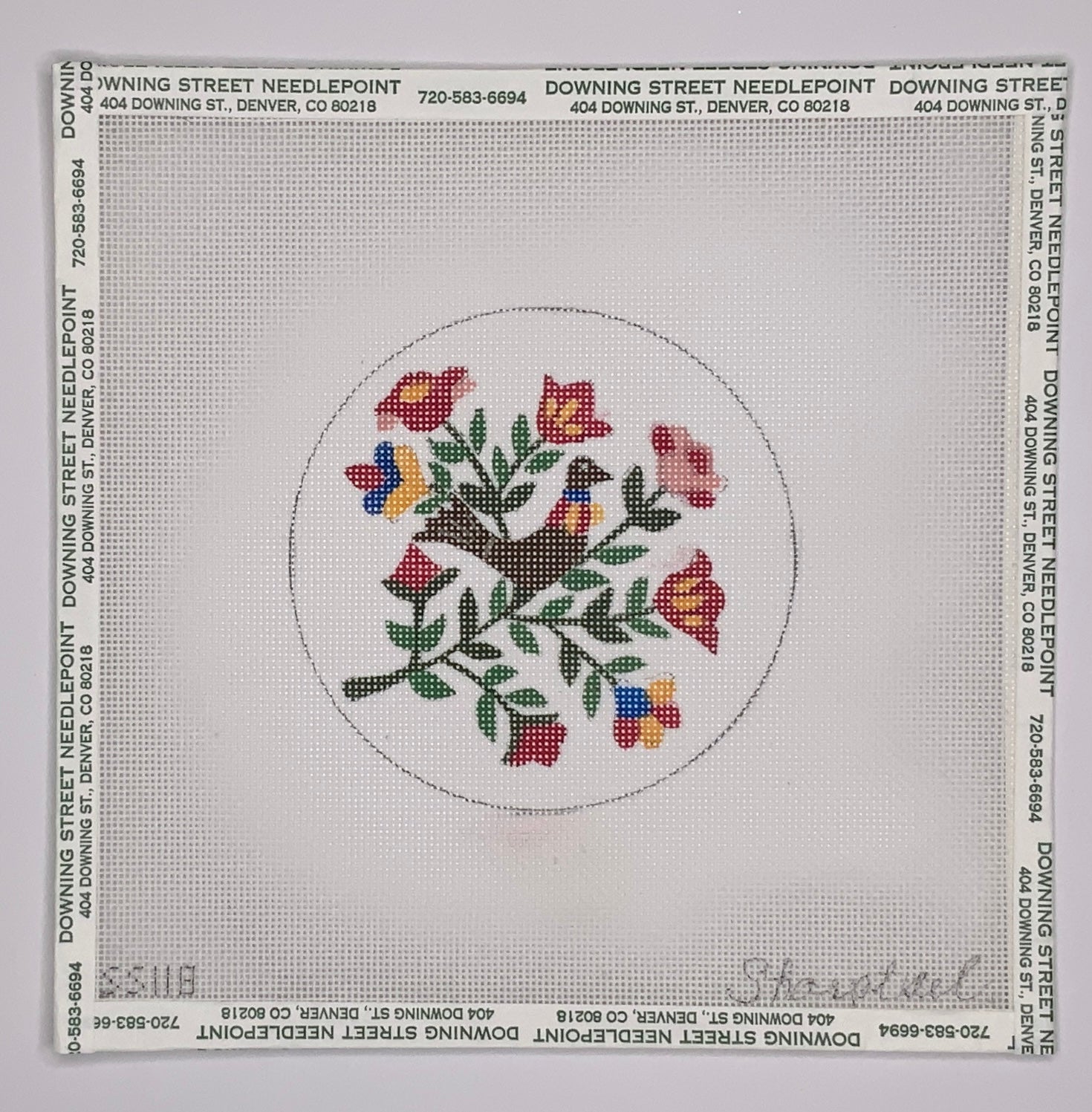 "Bird Floral Round" painted canvas by Sharptail