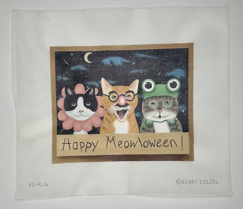 "Happy Meowloween - Cats" painted canvas by Ginny Diezel