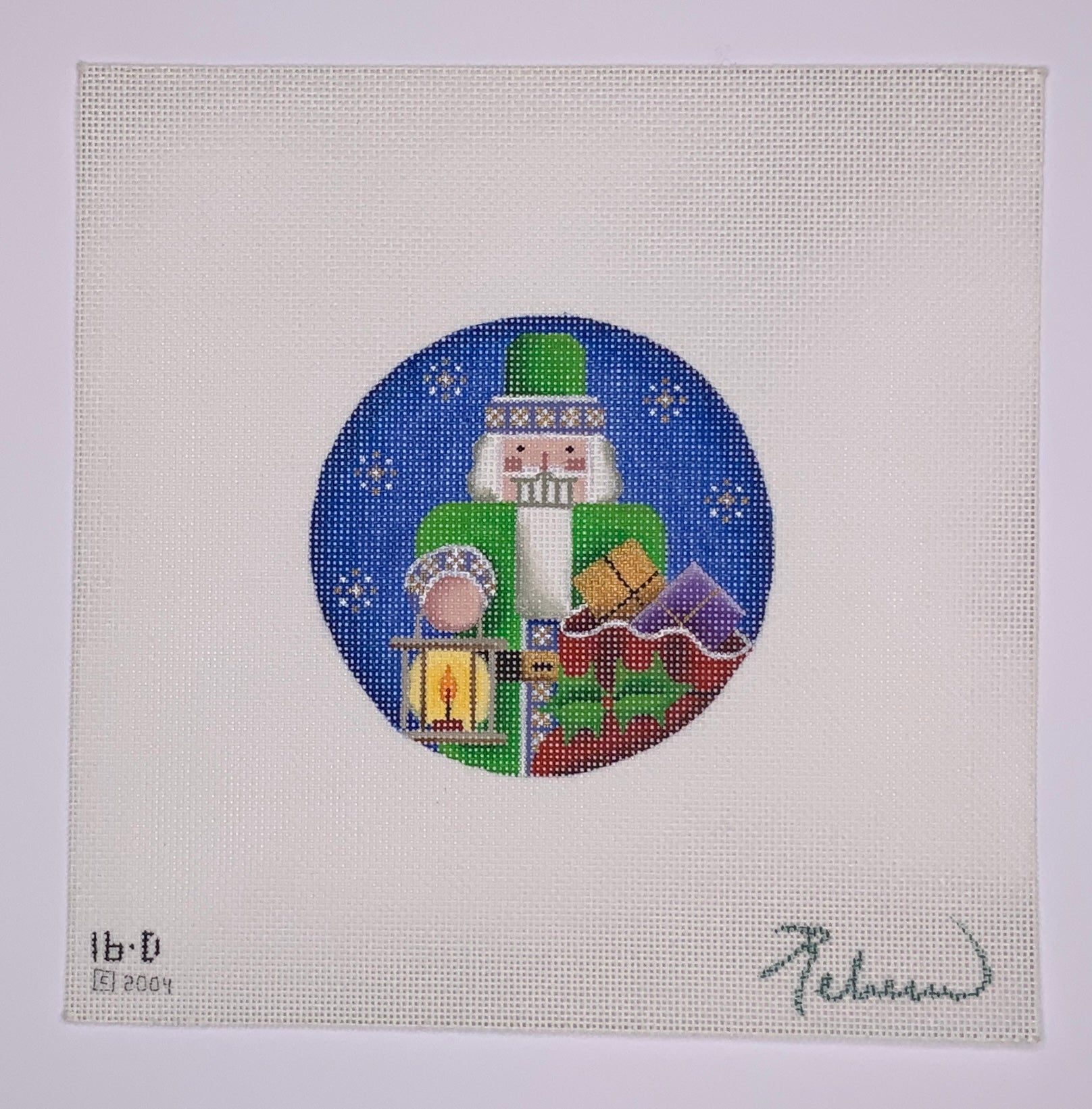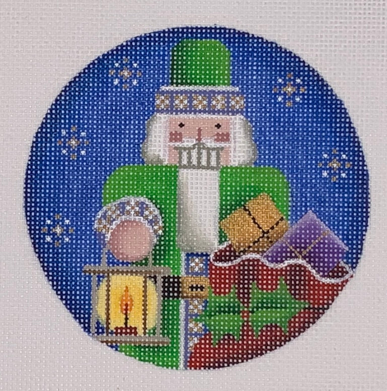 "Lantern Nutcracker Round" painted canvas by Rebecca Wood Designs