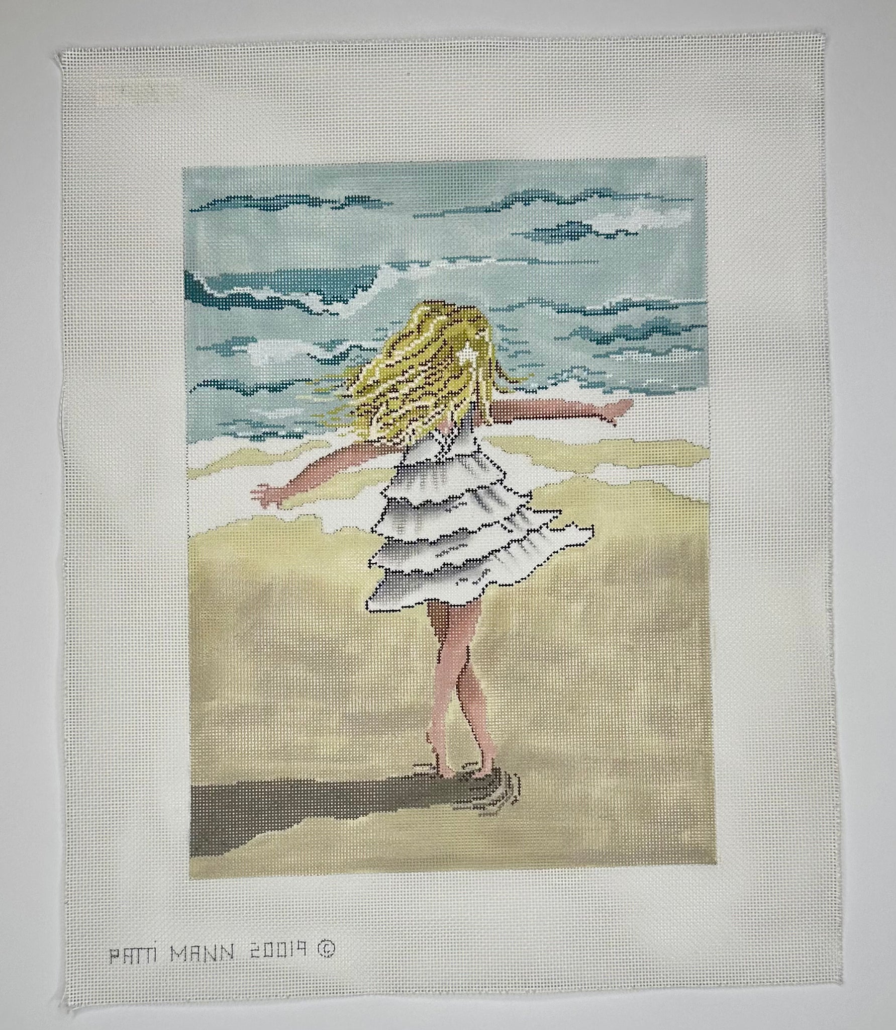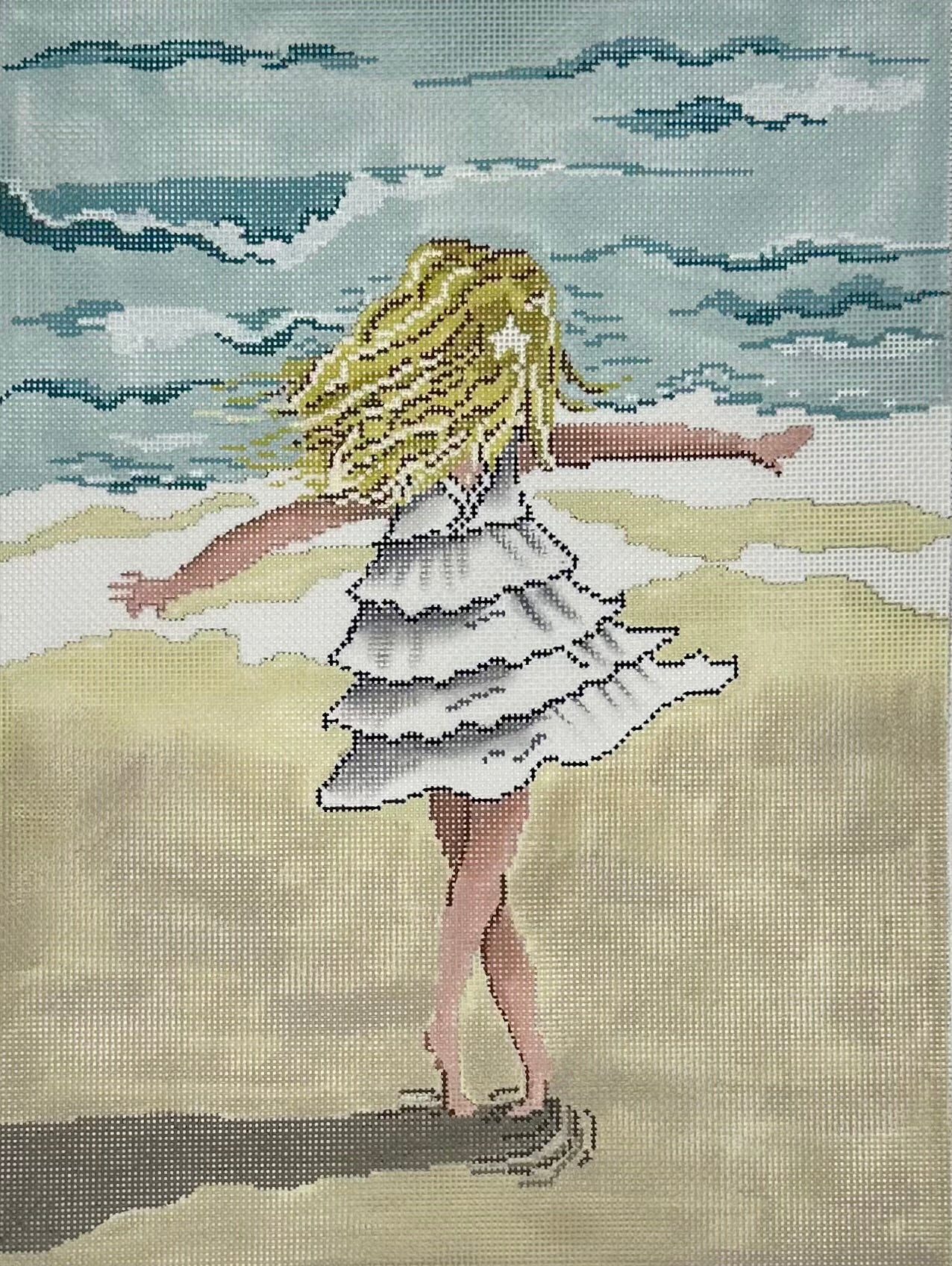 "Little Girl Twirling on the Beach" painted canvas by Patti Mann