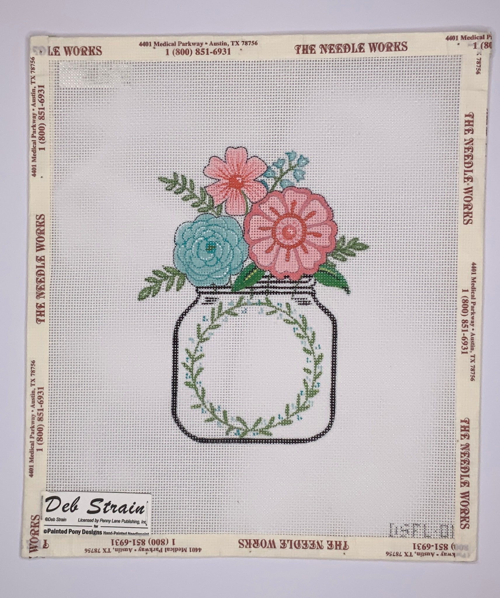 "Mason Jar Floral" painted canvas by Painted Pony, artwork by Deb Strain