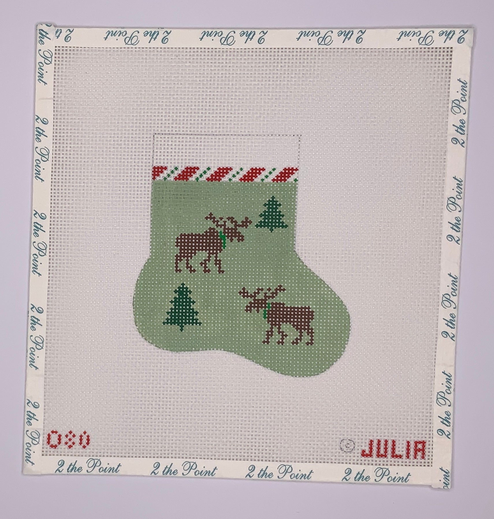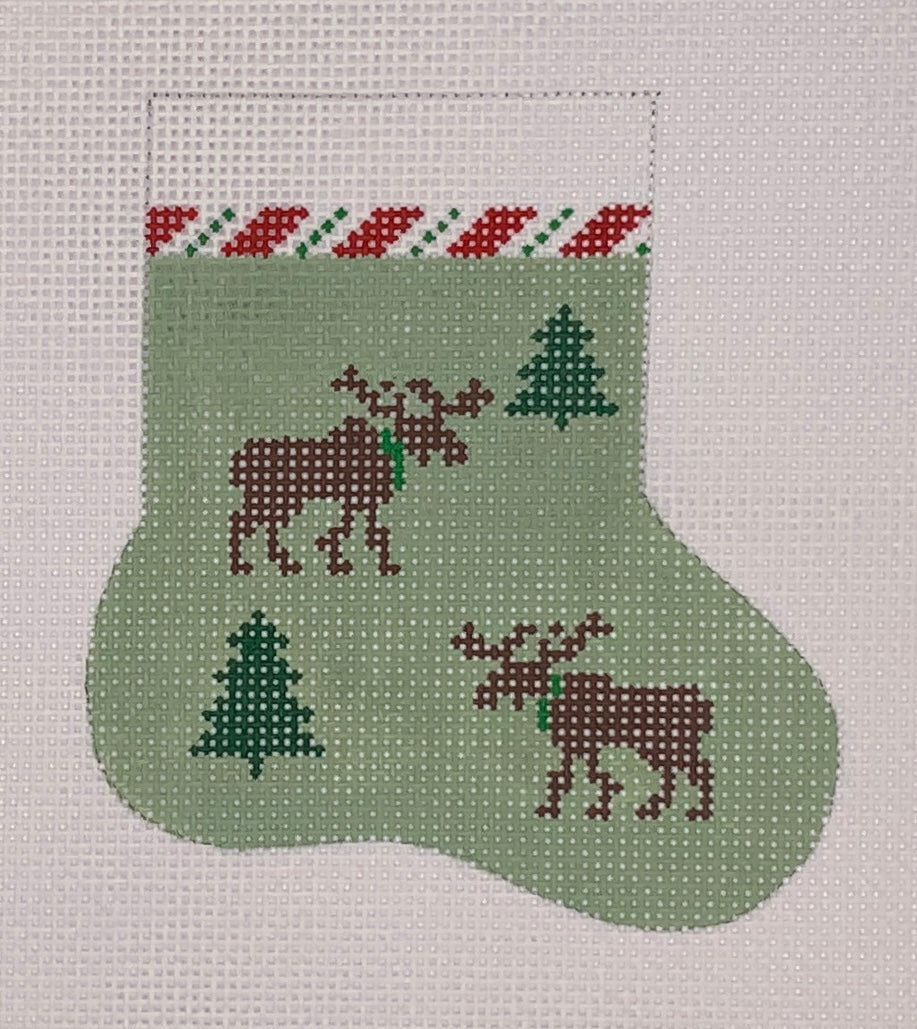 "Moose Mini Sock" painted canvas by Julia's Needleworks