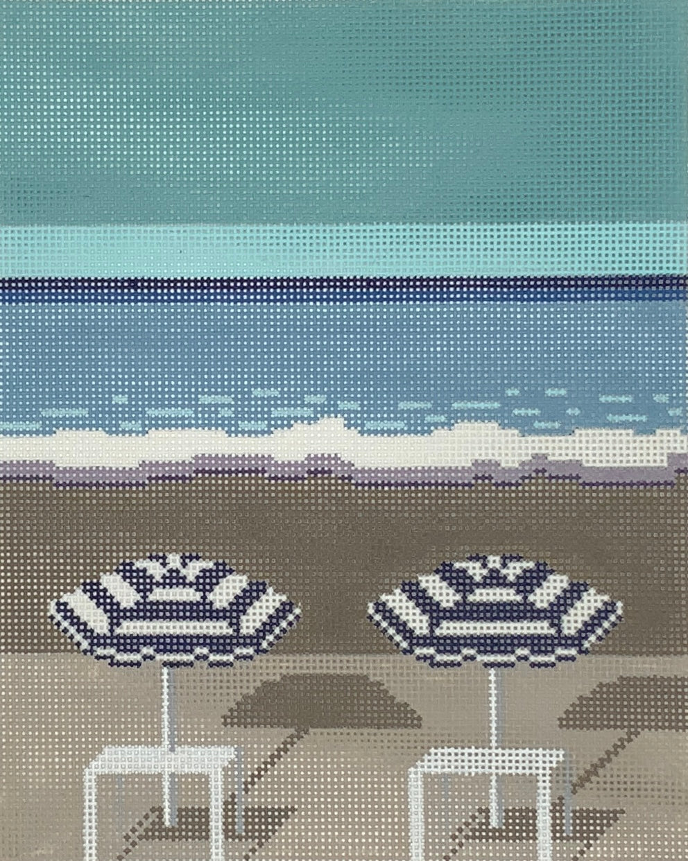 "Niece in Nice Beach Umbrellas" painted canvas by Alice & Blue