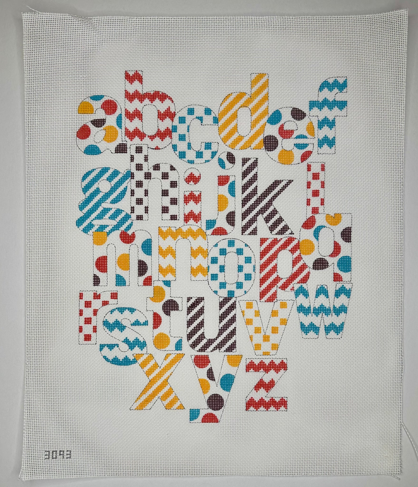 "Patterned Alphabet" painted canvas by Alice Peterson Co