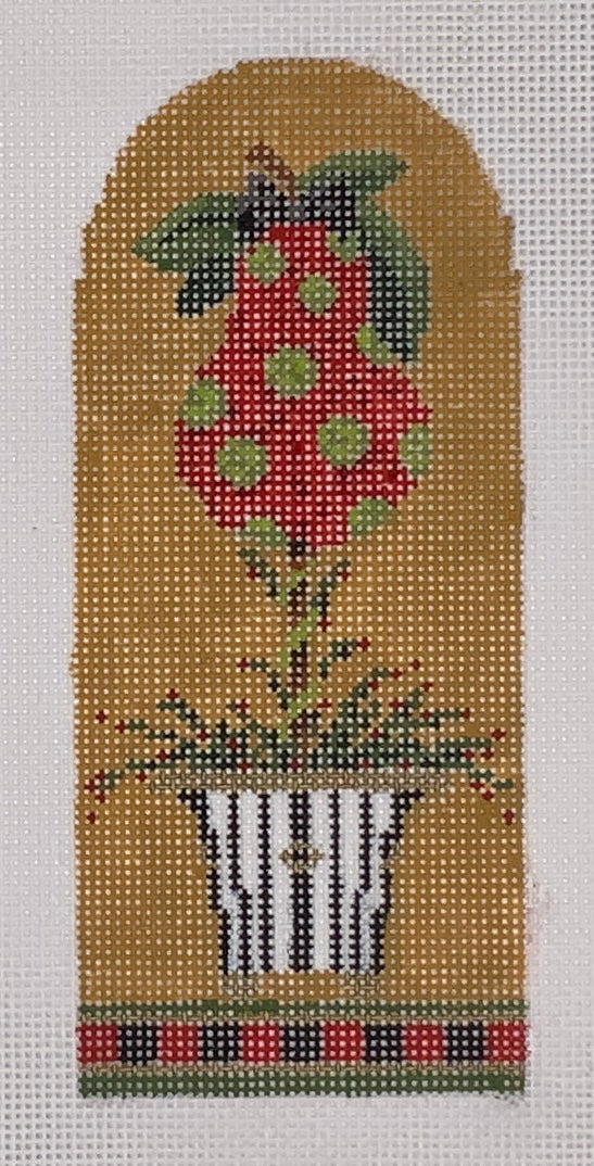 "Pear Topiary - Red & Green" painted canvas by Kelly Clark