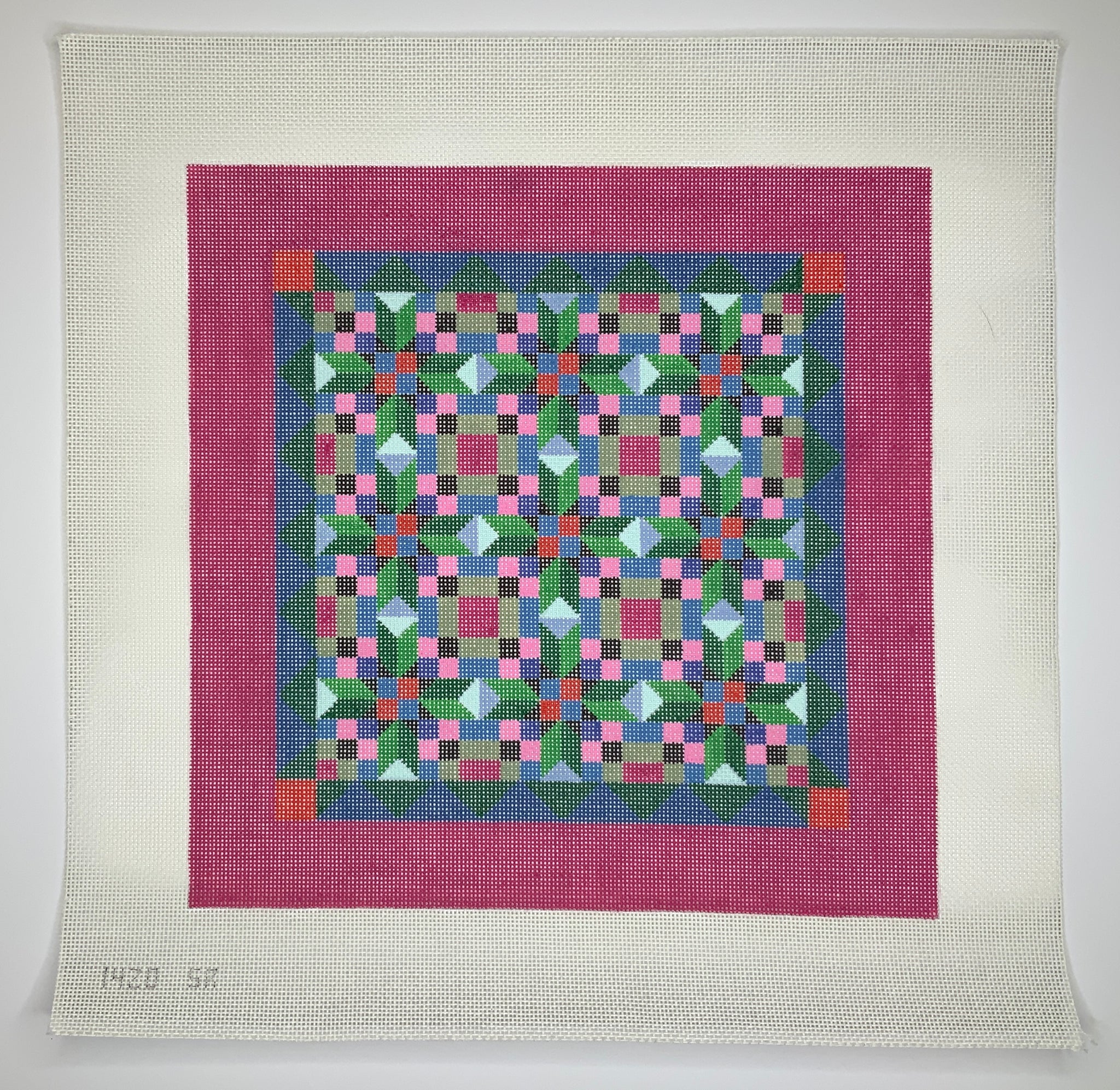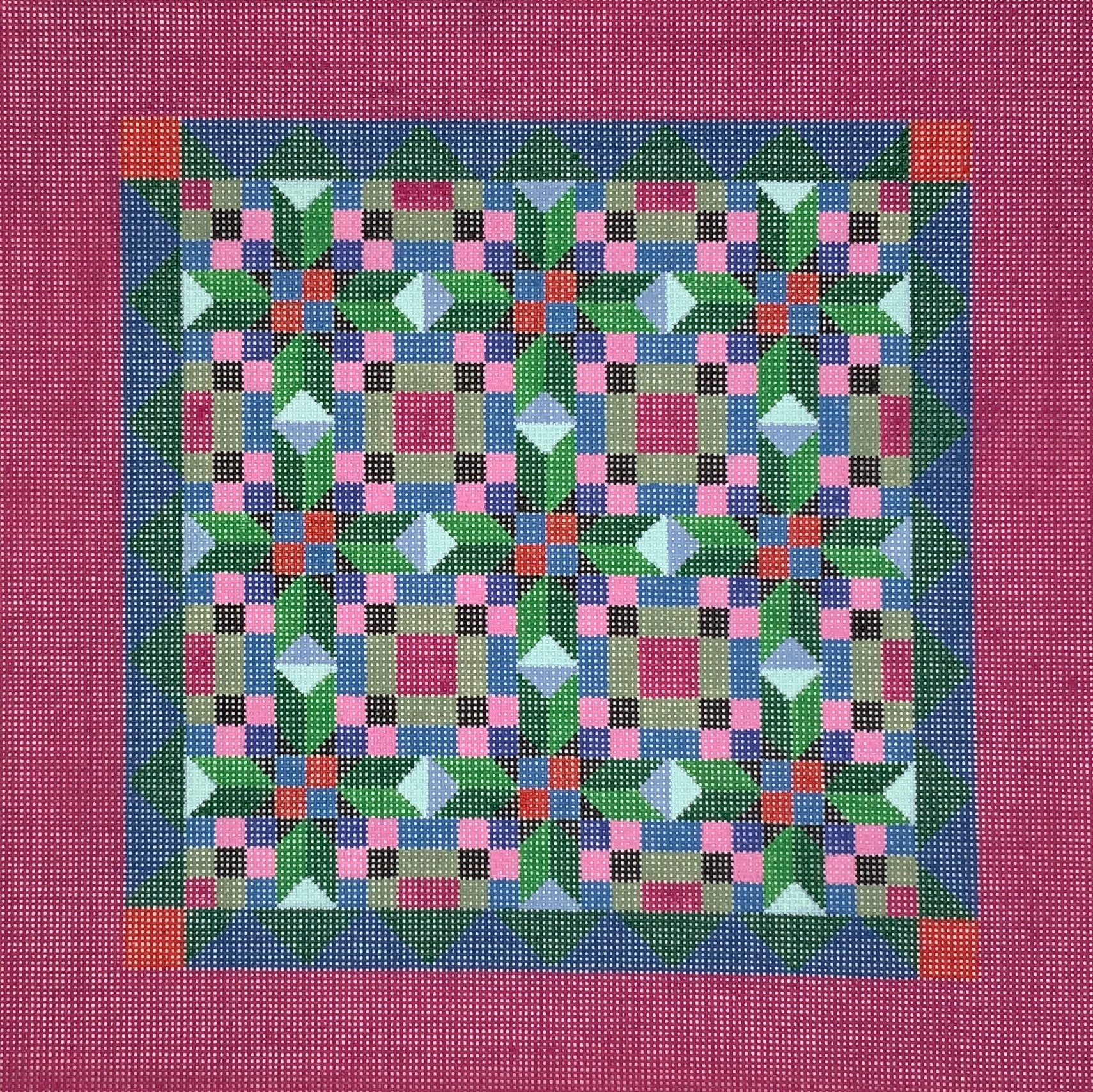 "Quilted Pattern on Pink Border" painted canvas by Susan Roberts