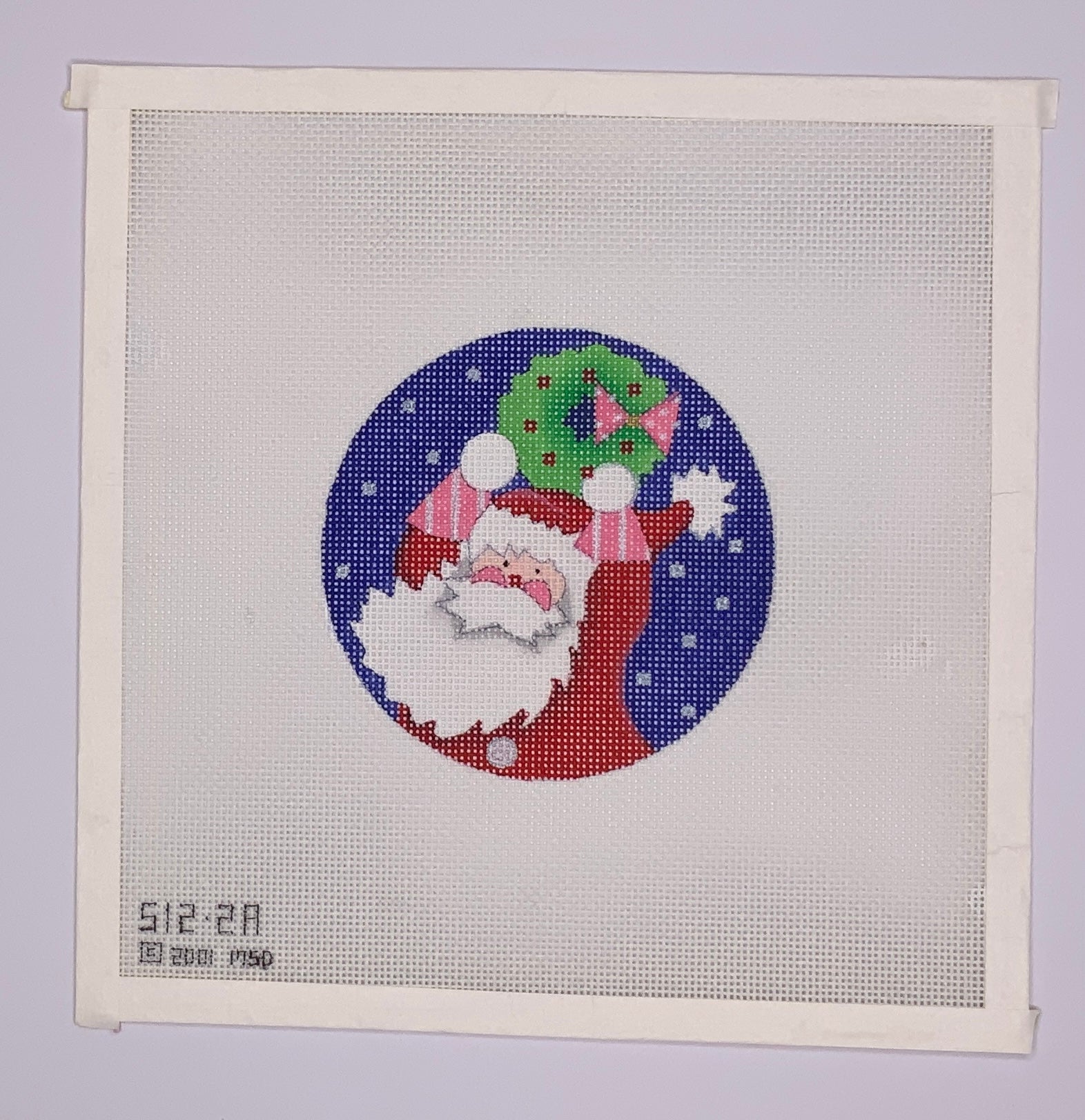 "Santa with Wreath Round" painted canvas by Melissa Shirley