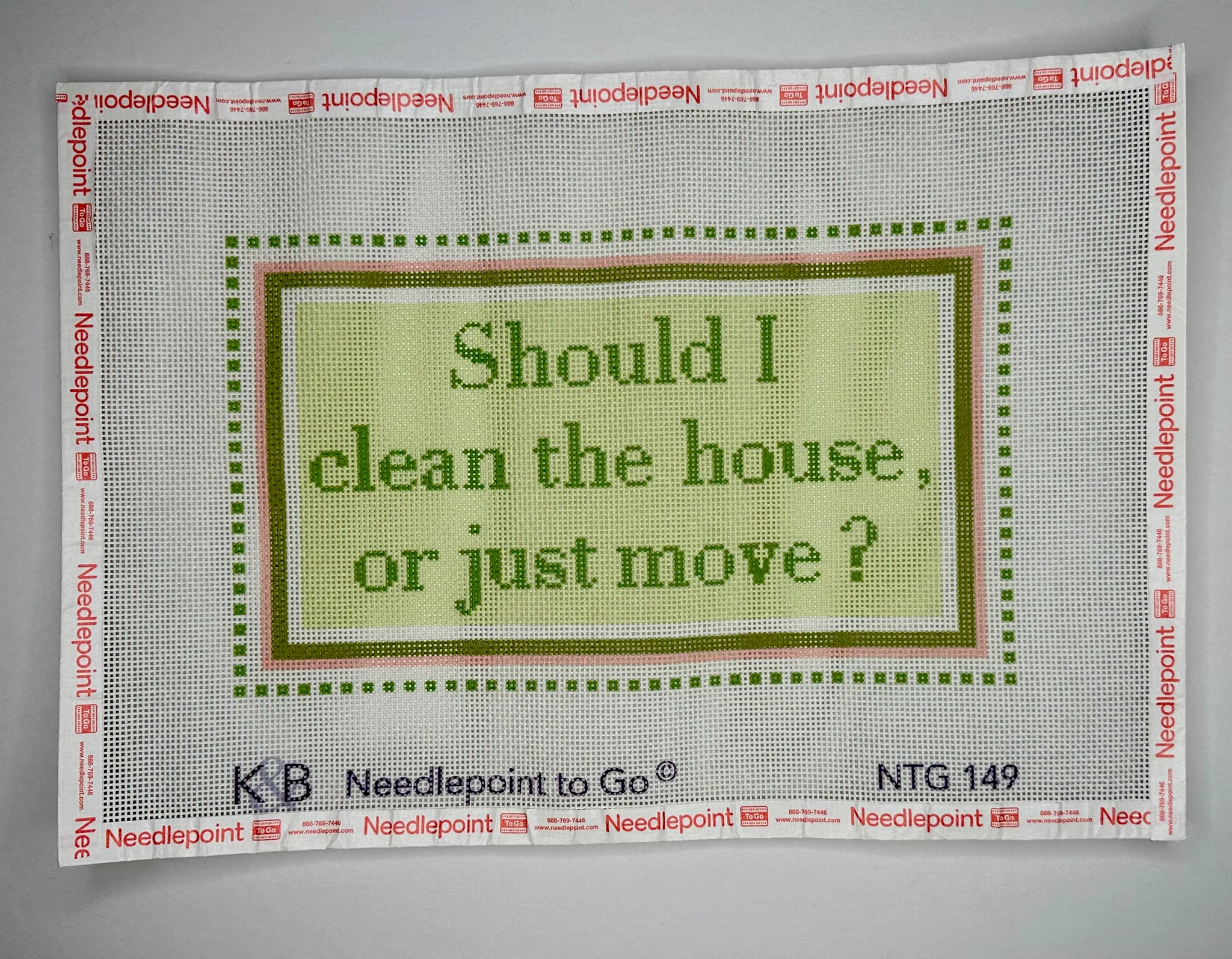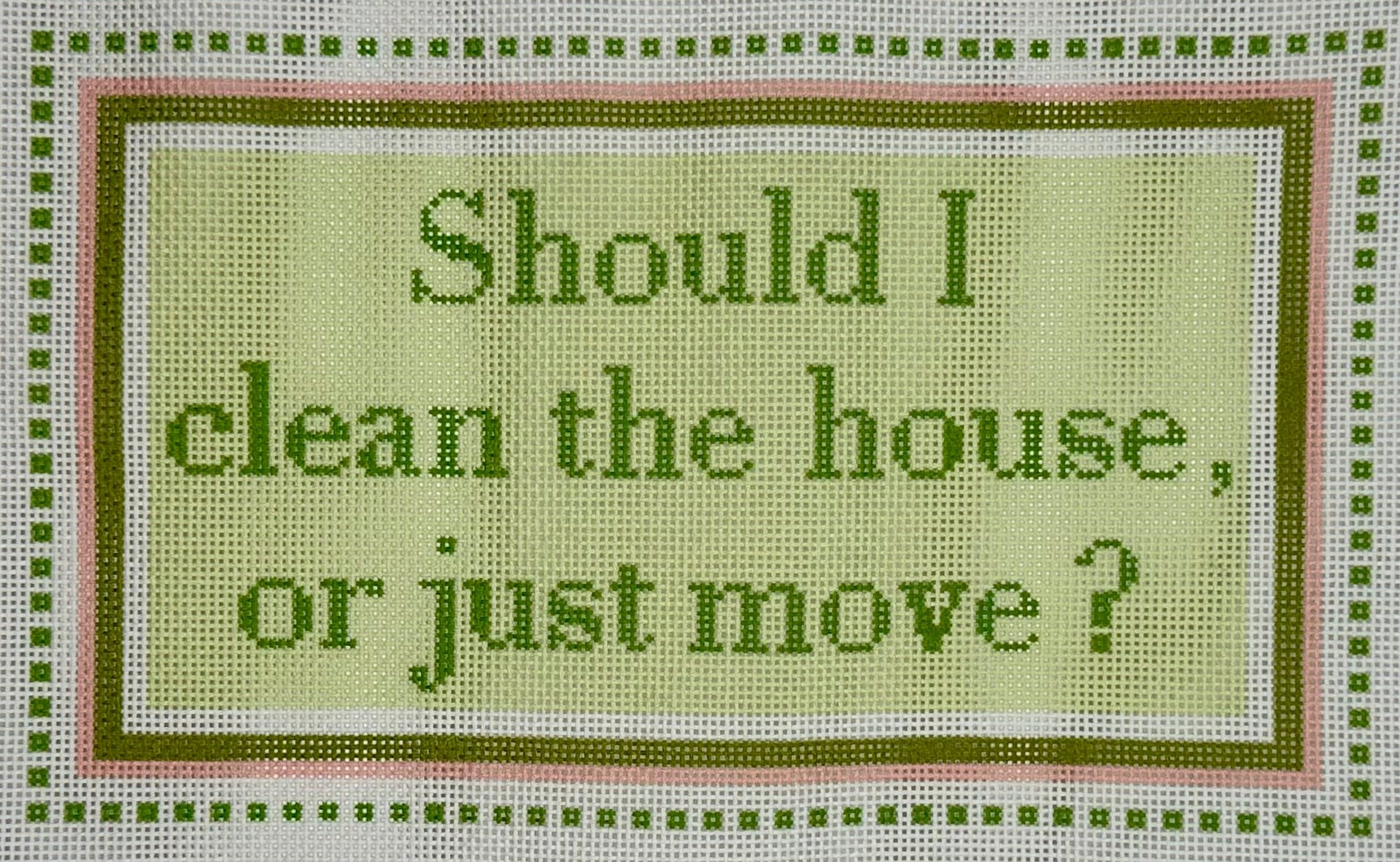 "Should I Clean the House" printed canvas by Needlepoint To Go