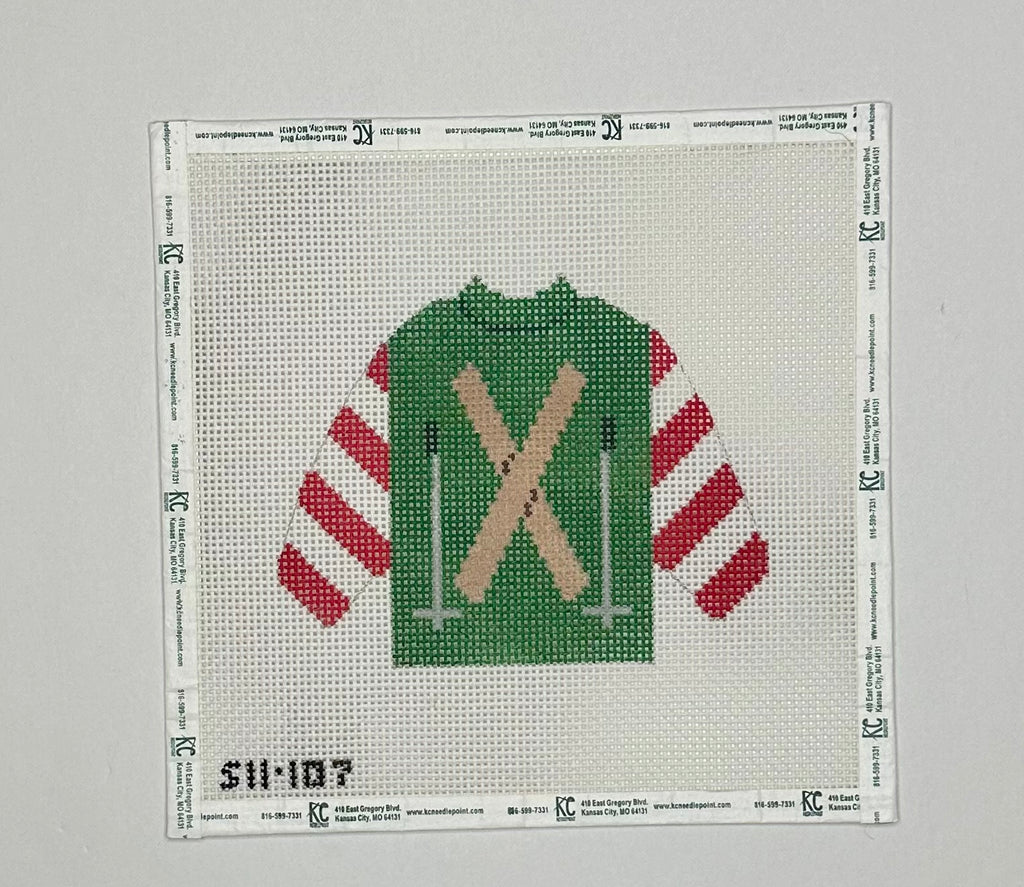 "Skis and Poles Pullover" painted canvas by Stitch Its