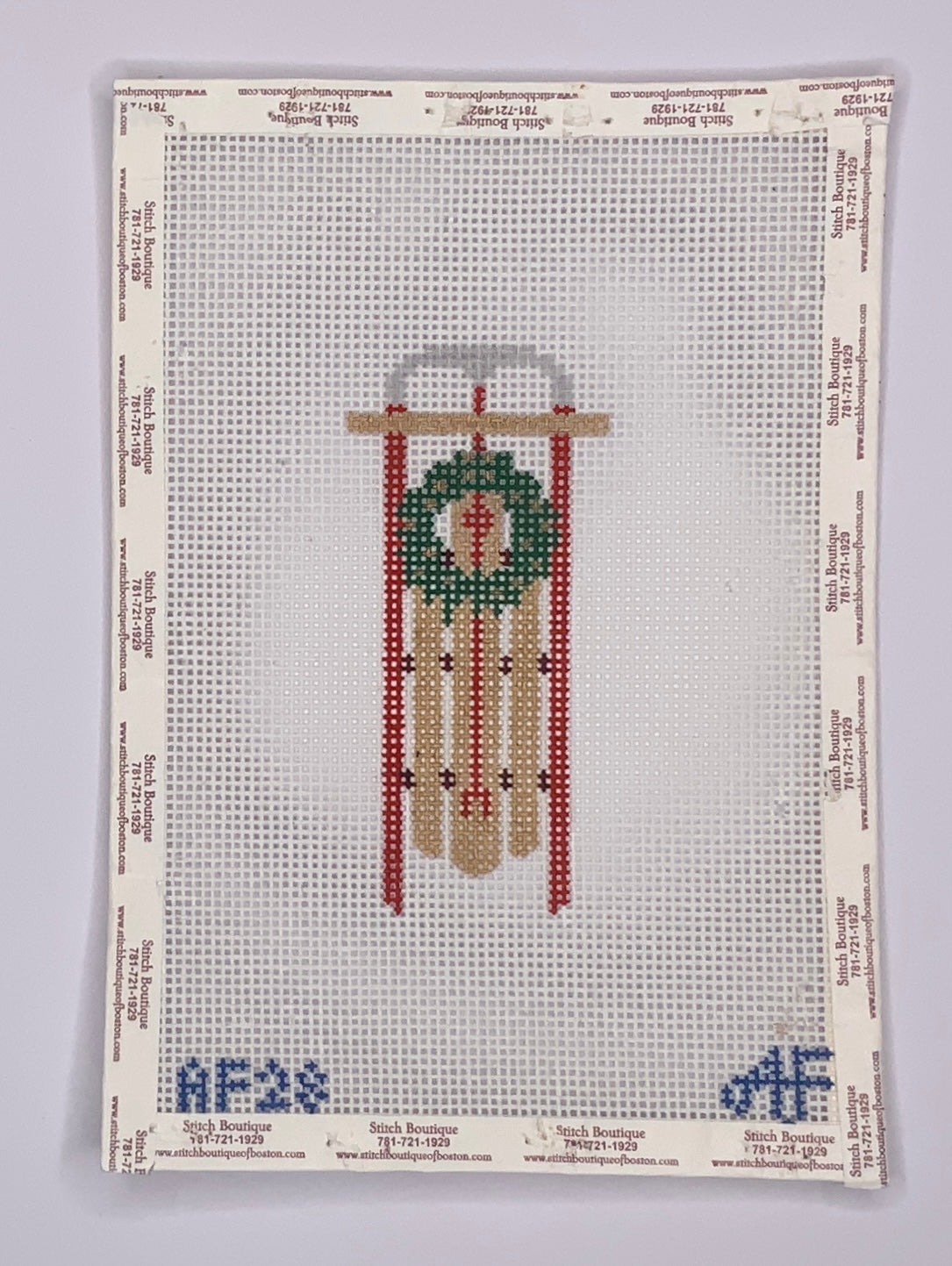 "Sled with Wreath" painted canvas by Anne Fisher