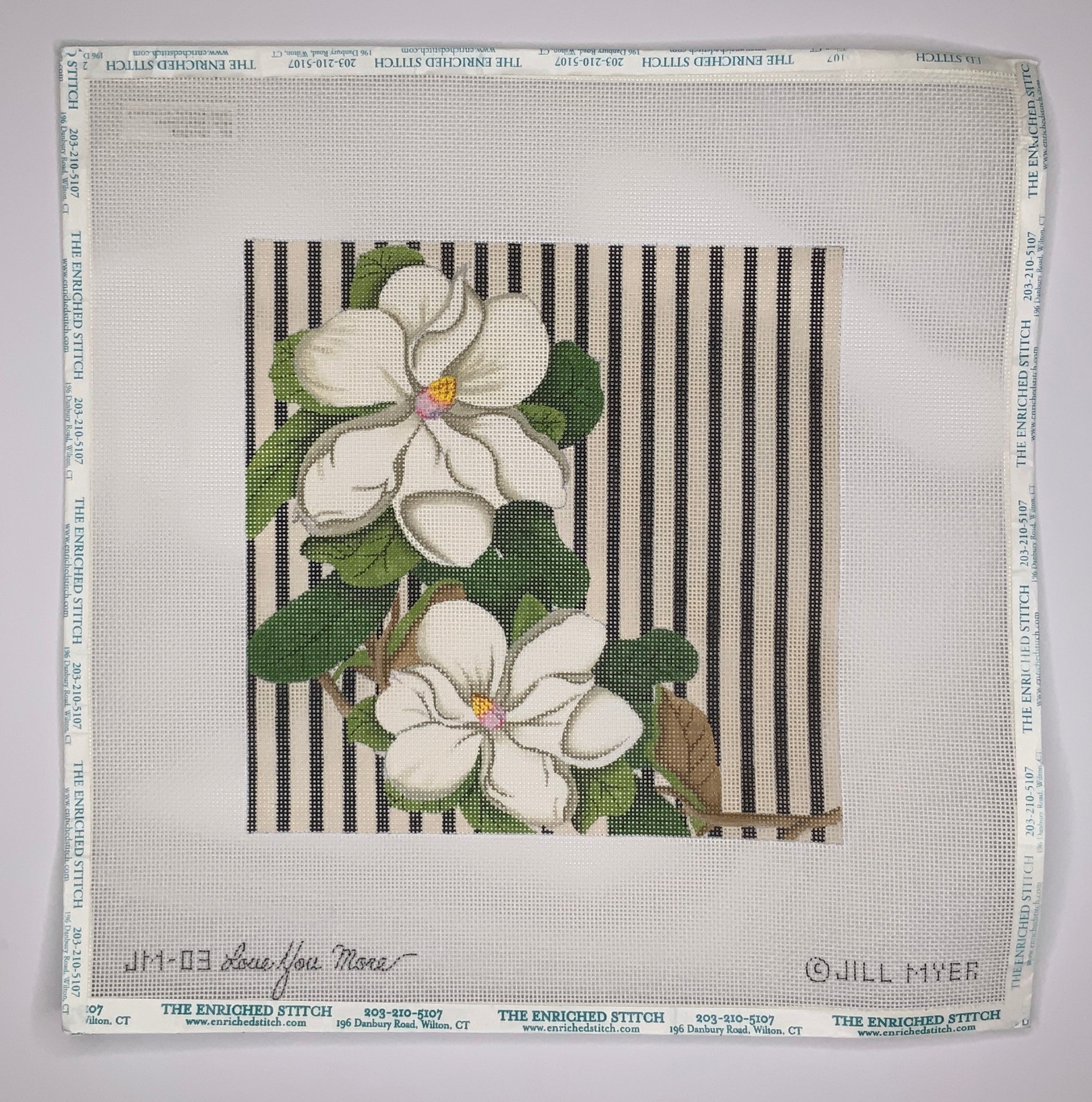 "Striped Magnolia" painted canvas by Love You More, artwork by Jill Meyer