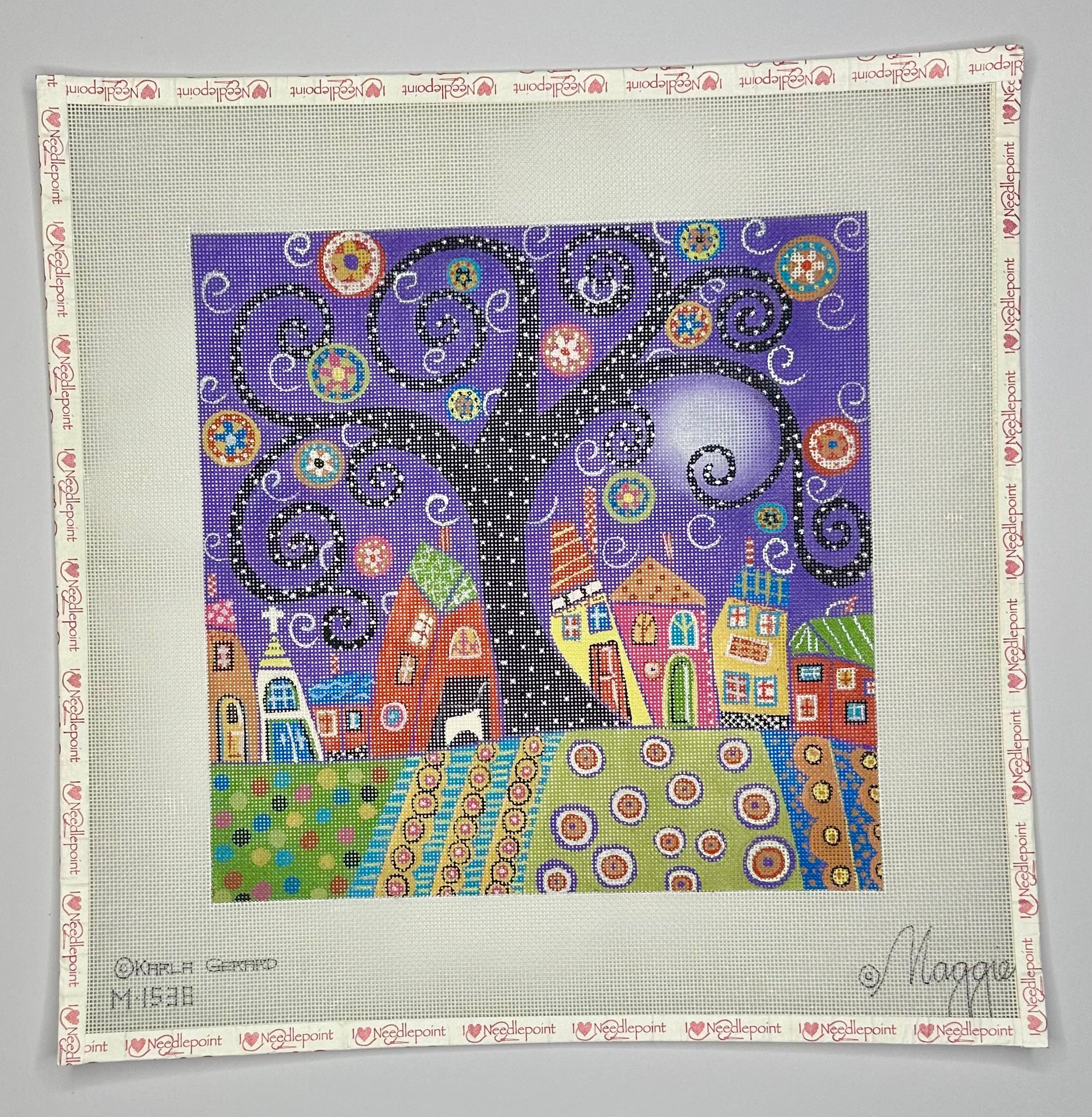 "Village & Trees" painted canvas by Maggie Co, artwork by Karla Gerard