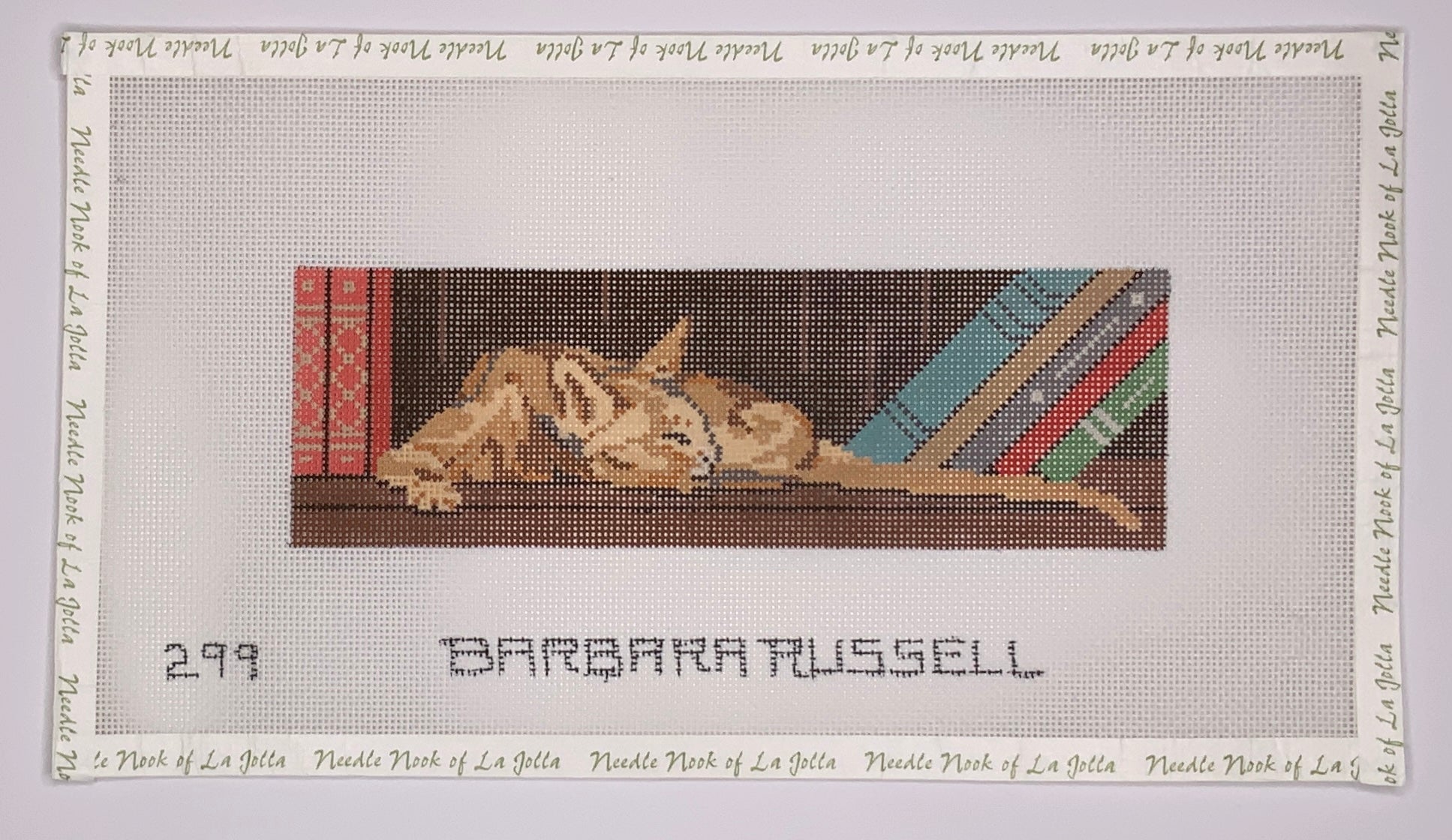 "Cat on Bookshelf" painted canvas by Barbara Russell