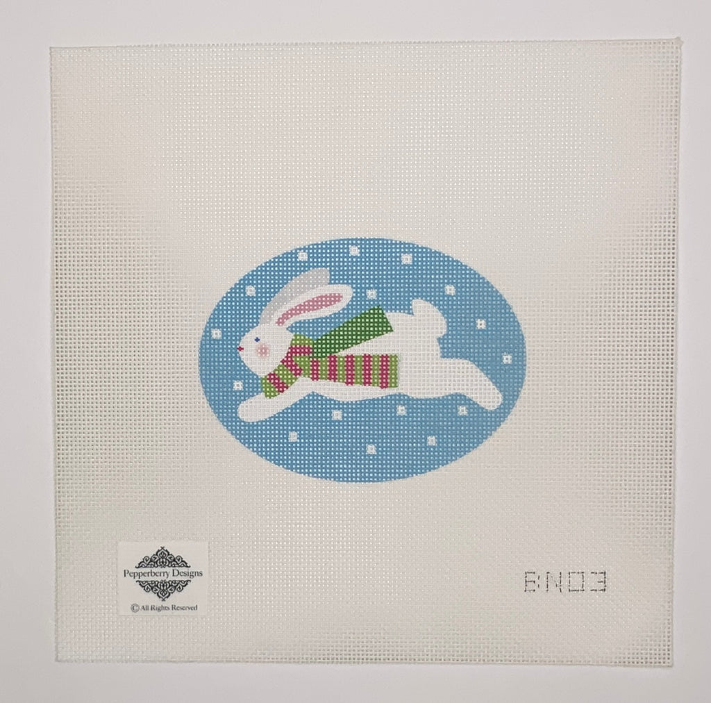 "Jumping Bunny Green/Pink Scarf" painted canvas by Pepperberry Designs