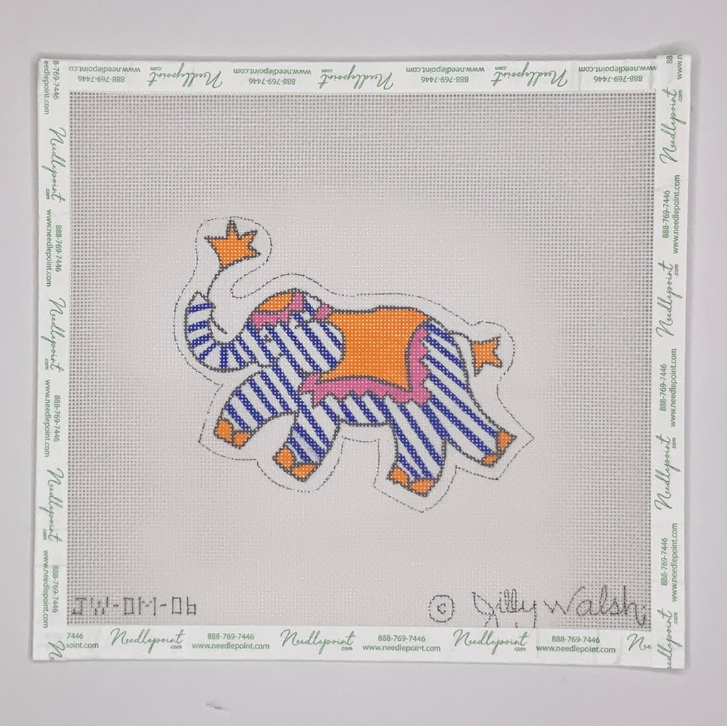 "Mini Elephant - Periwinkle Stripes" painted canvas by Jilly Walsh