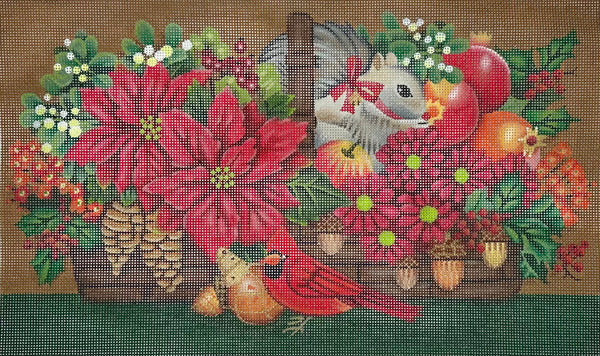 Barbara's Needlepoint Hollies and Berries Bow - Black & White Check $108.50