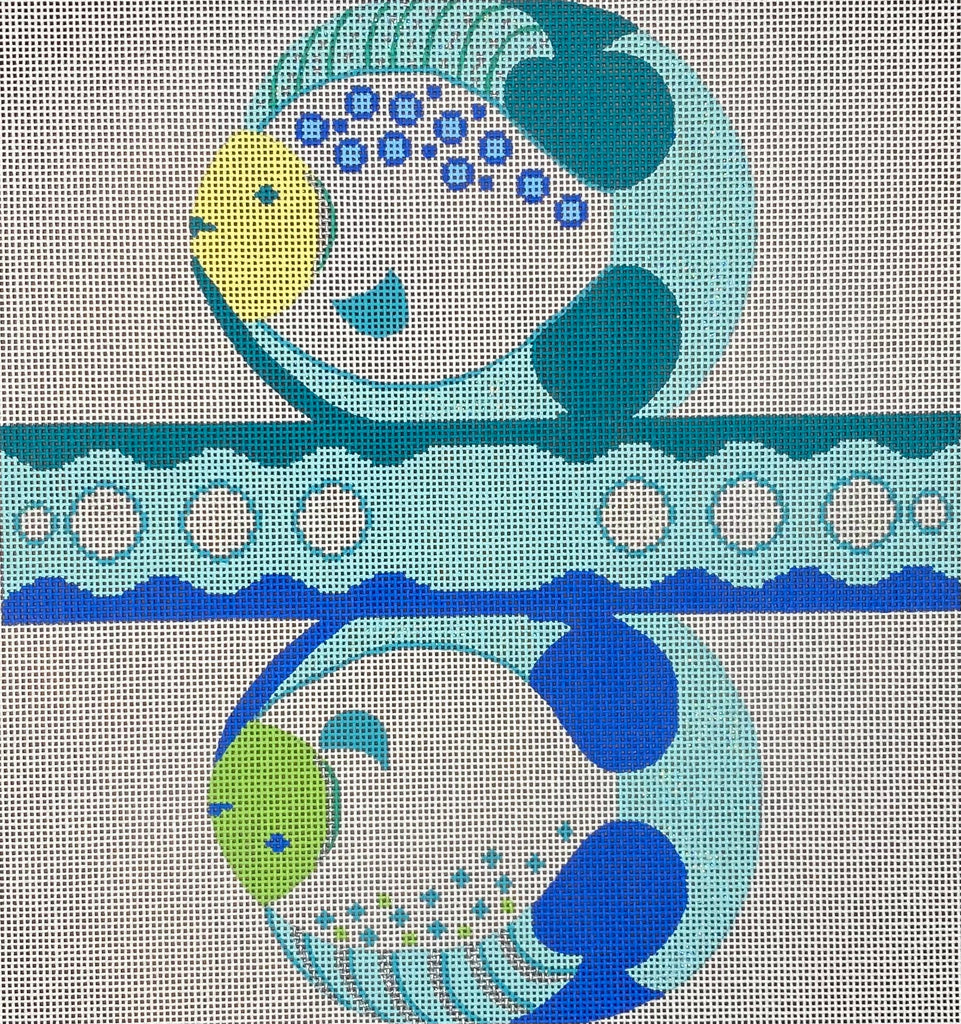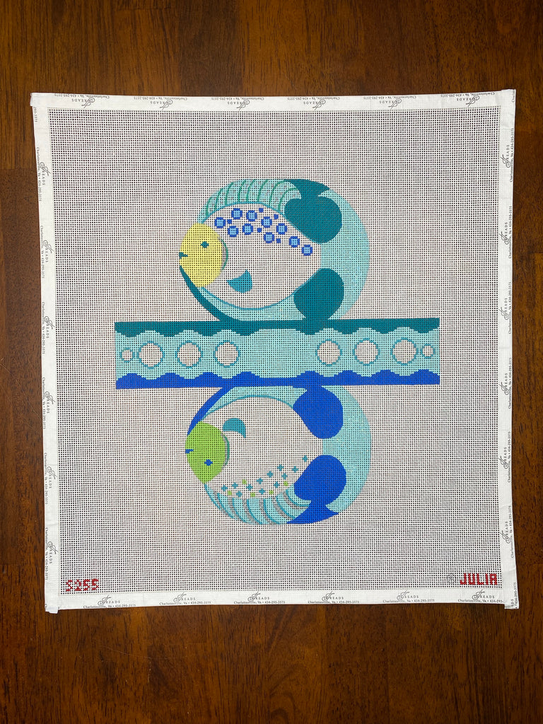 "Basket - Fish" painted canvas by Julia's Needleworks