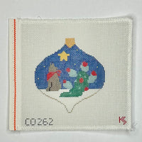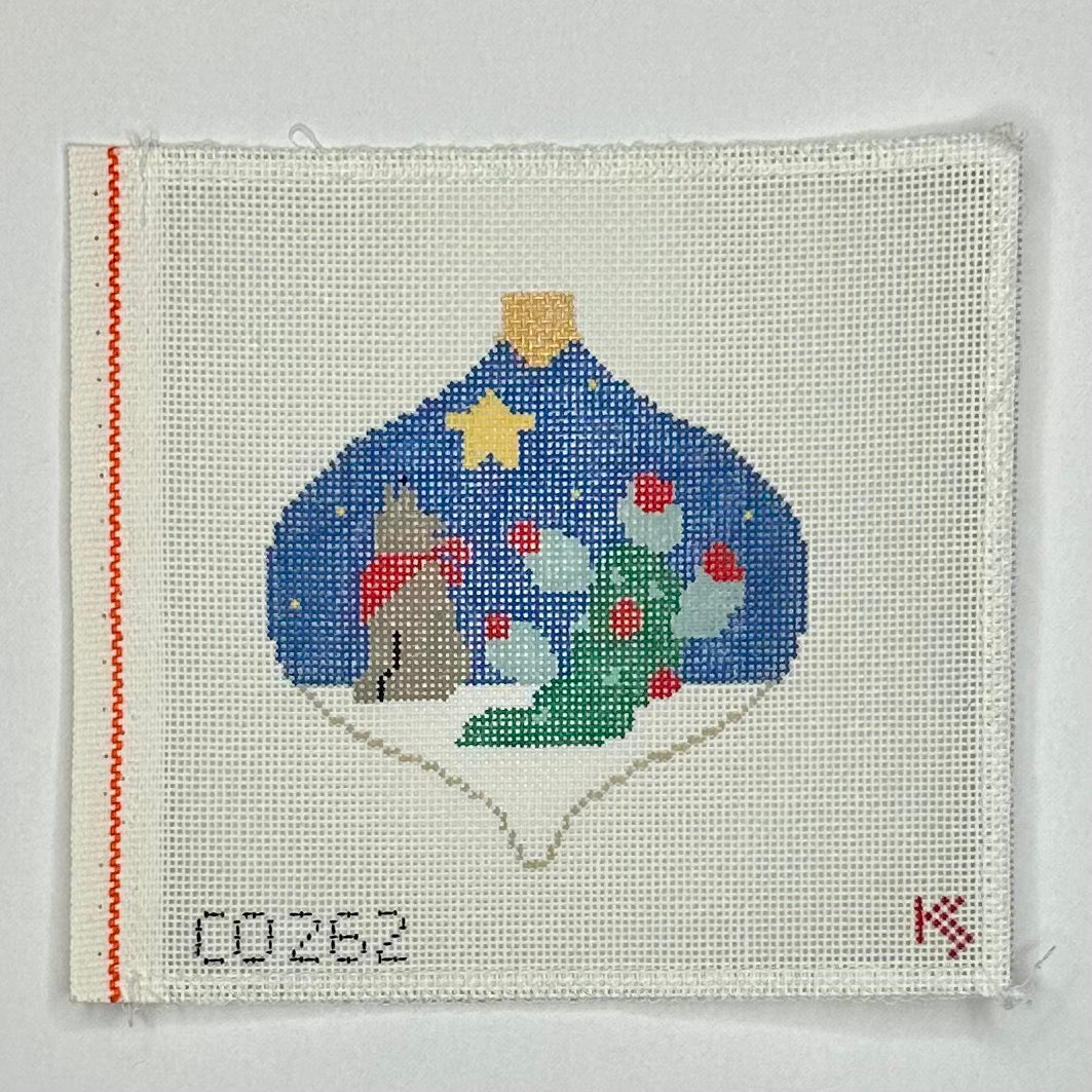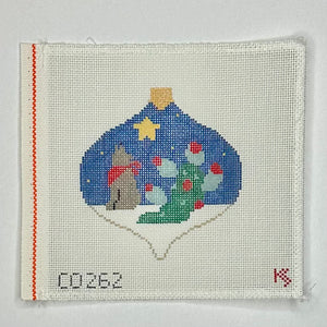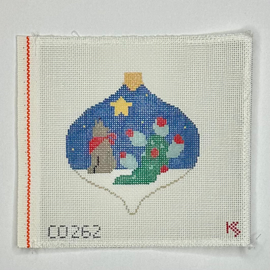 "Coyote with Cactus Bauble" painted canvas by Kathy Schenkel