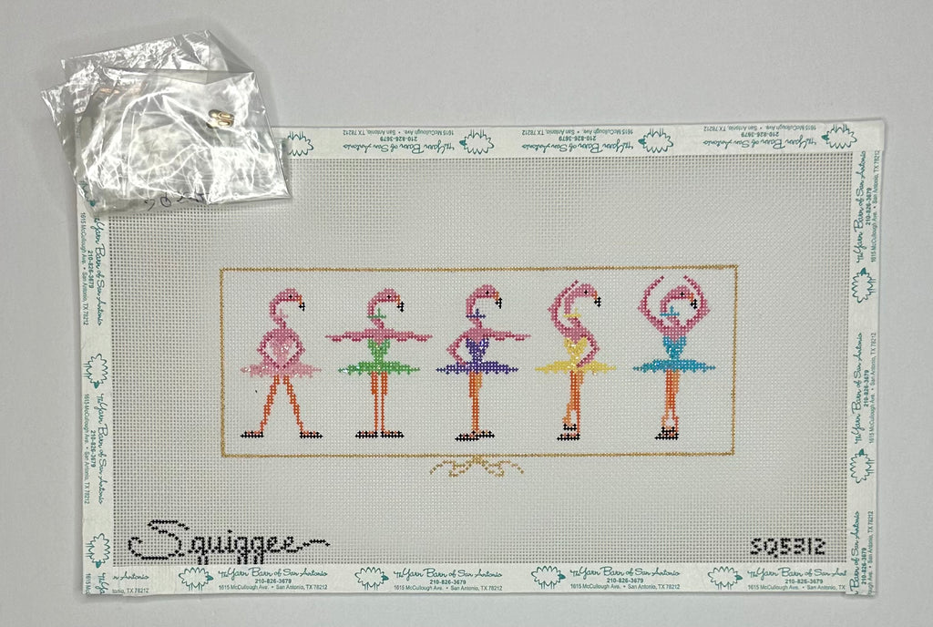 "Flamingo Ballerinas" painted canvas by Squiggee