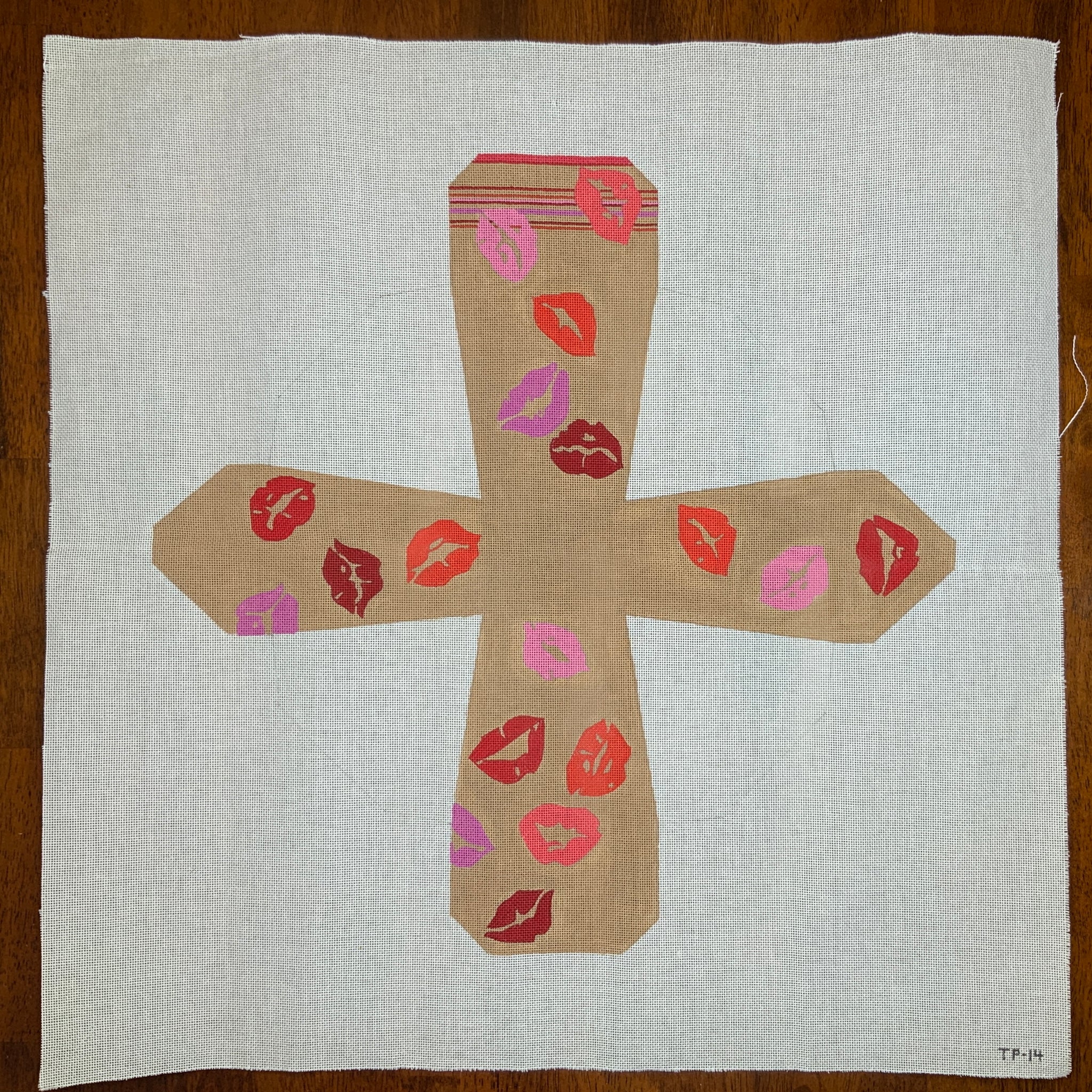 "Kisses Take Out Purse" painted canvas by Needlepoint of Back Bay