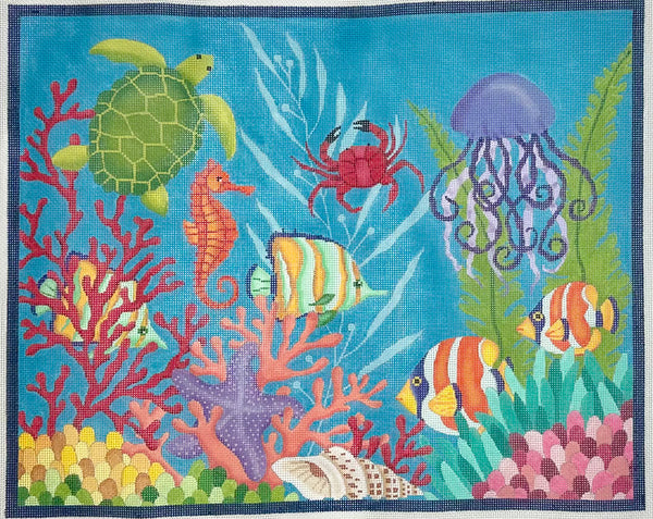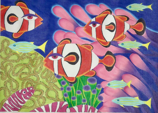 Kate Dickerson Med. Whale Sea Coral Pinks & Greens $105.00