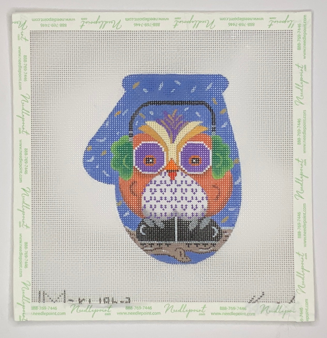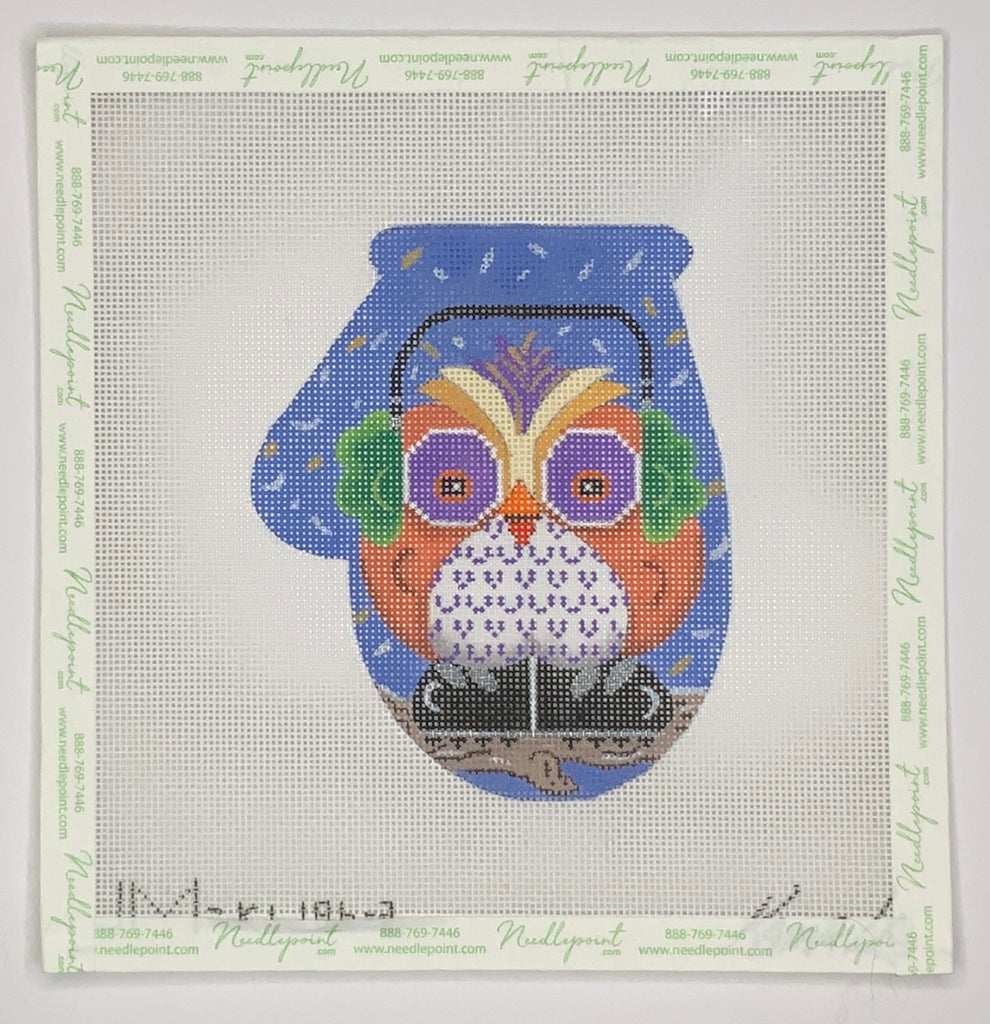 "Christmas Mitt - Owl w/ Muffs" painted canvas by Julie Mar