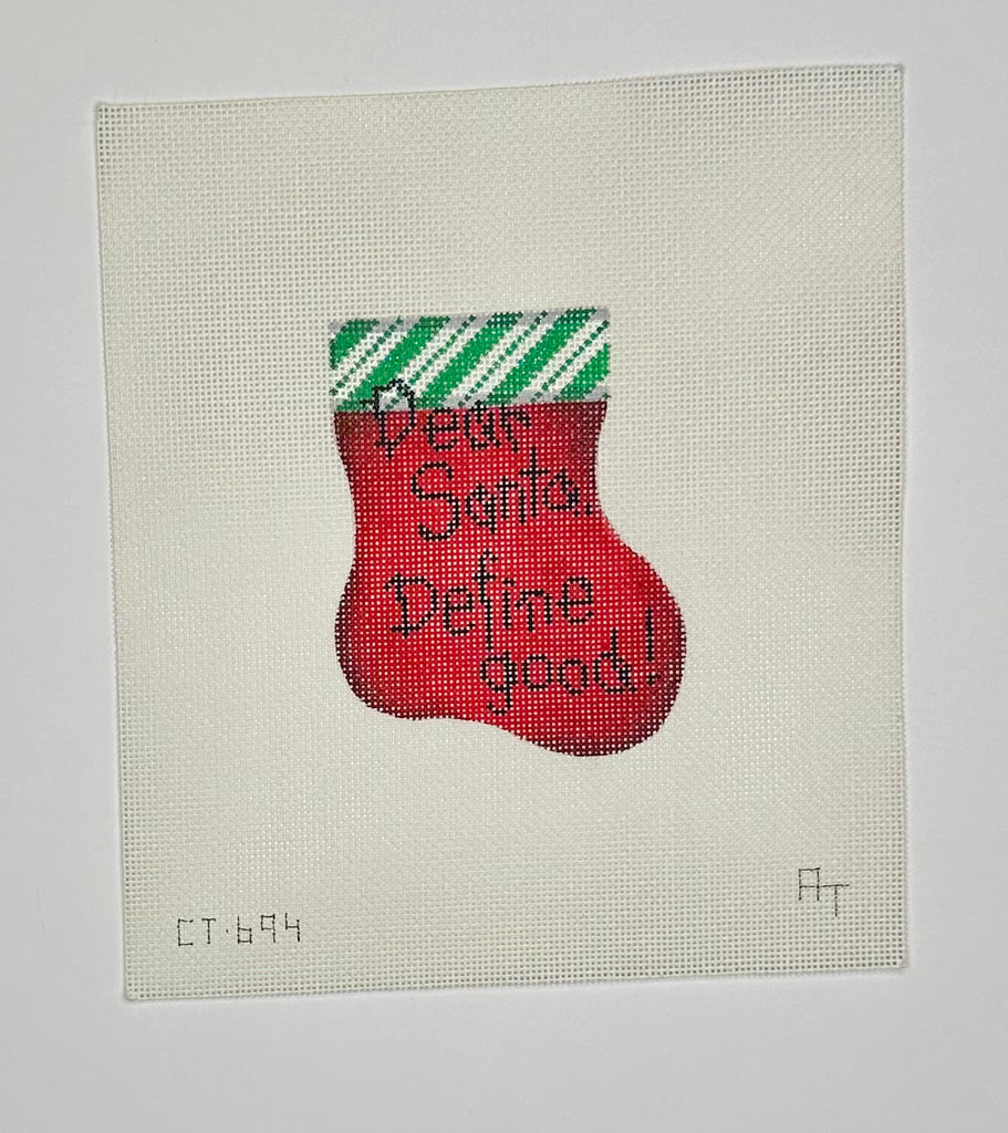"Dear Santa Define Good Mini Sock" painted canvas by Associated Talents