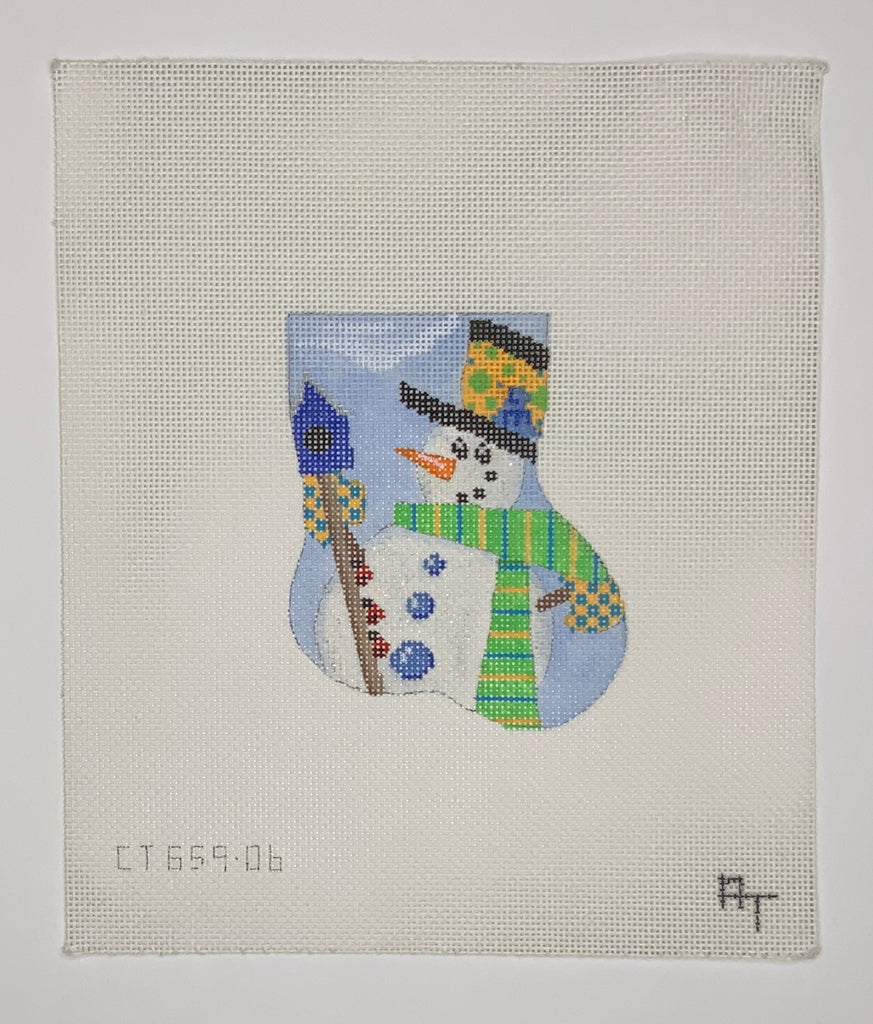 "June Snowman Mini Sock" painted canvas by Associated Talents