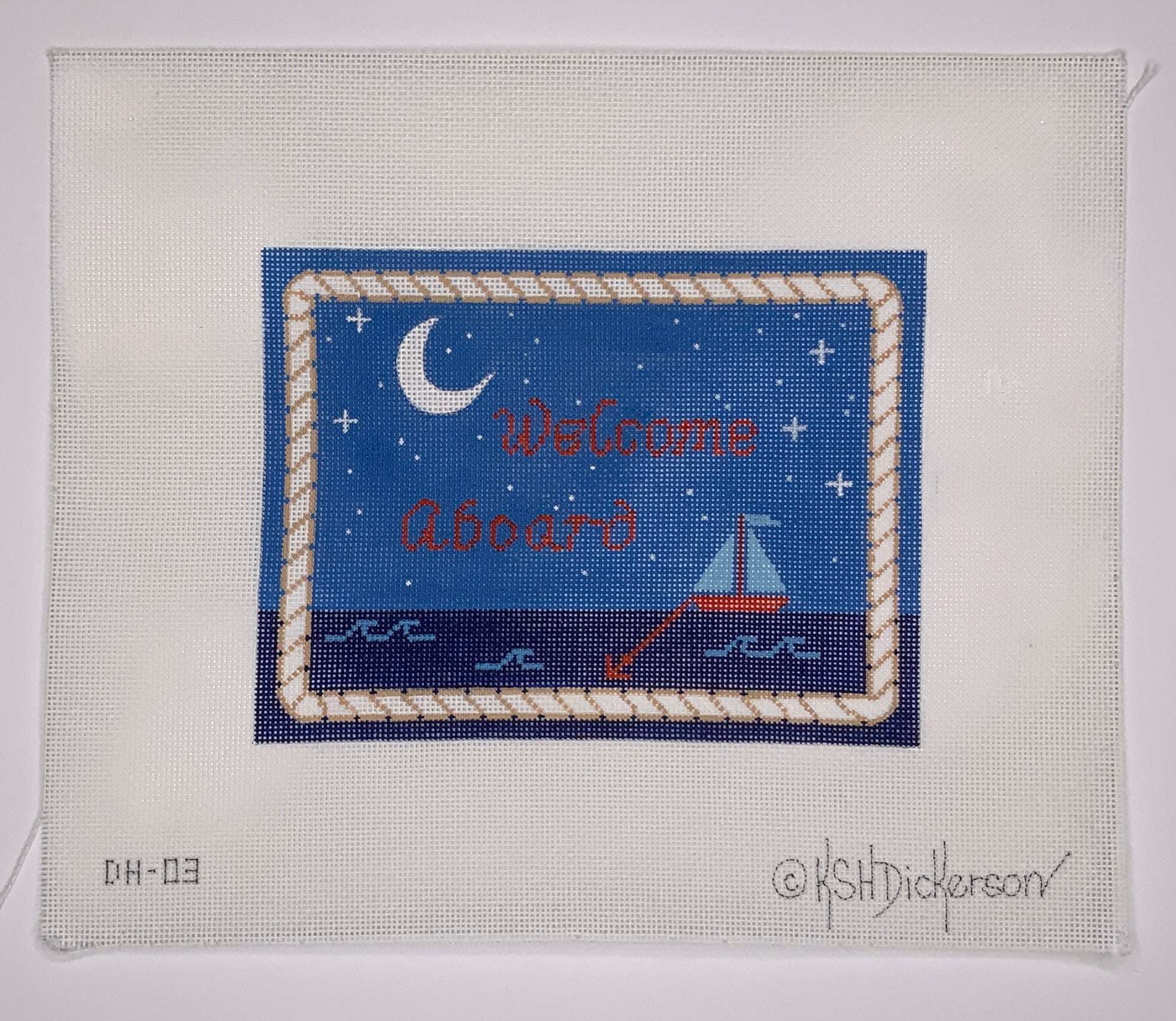 "Welcome Aboard" painted canvas by Kate Dickerson
