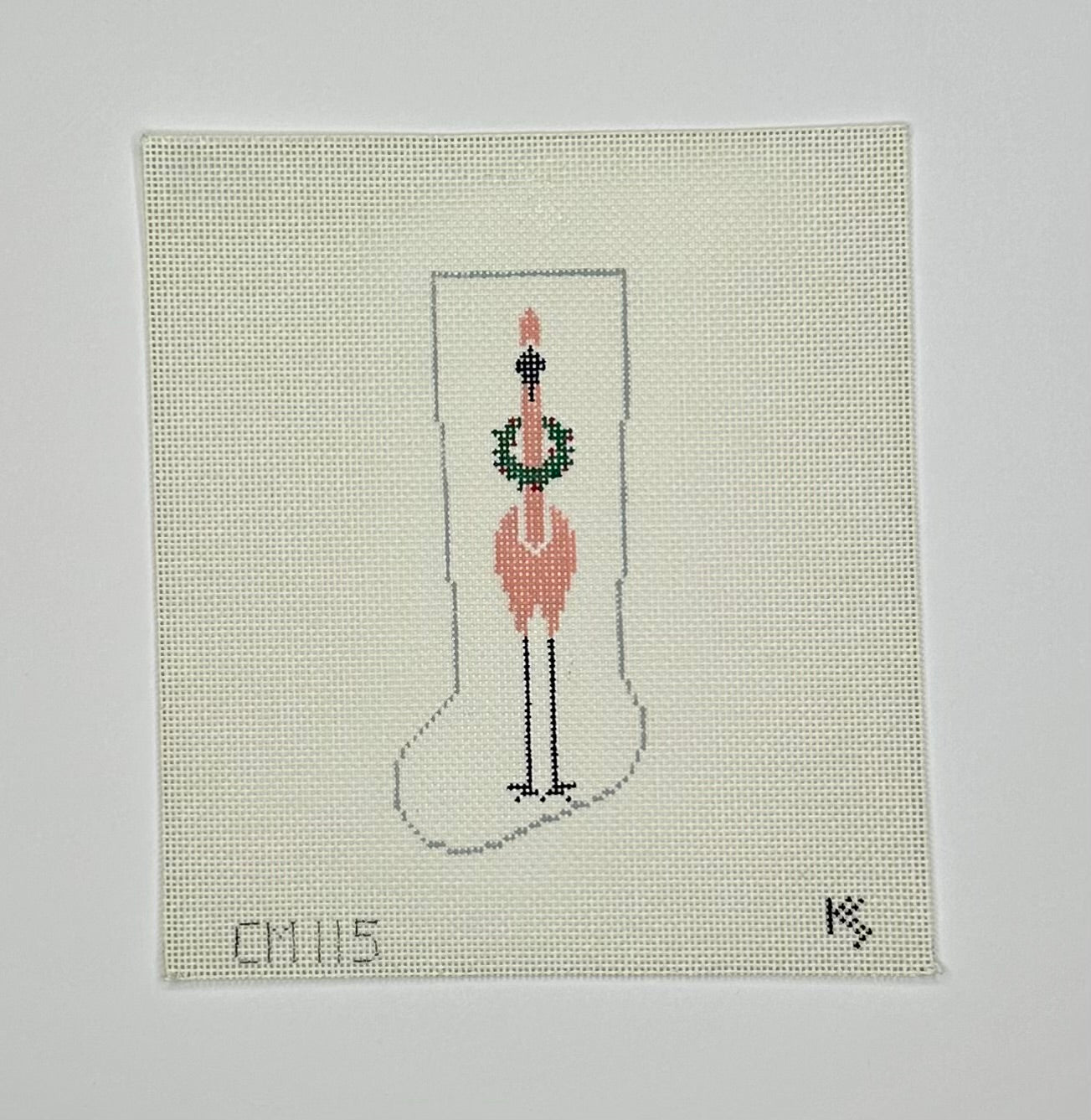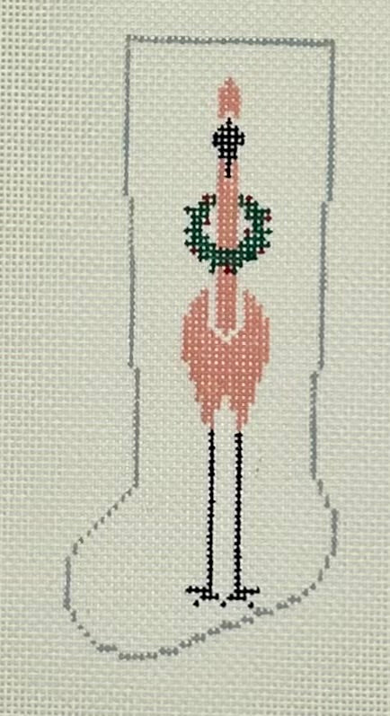 "Flamingo Mini Sock" painted canvas by Kathy Schenkel