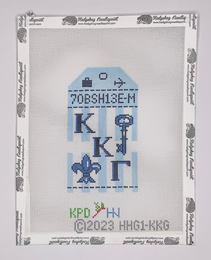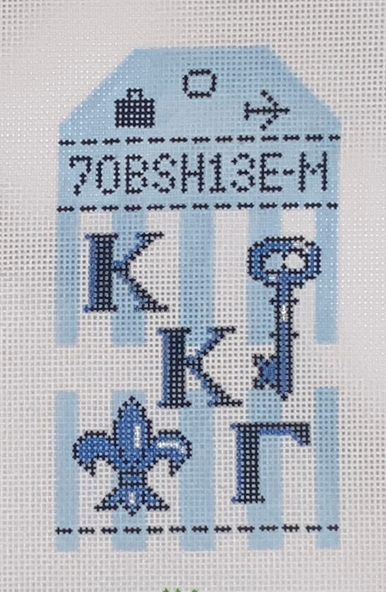 "Kappa Retro Travel Tag" painted canvas by Hedgehog Needlepoint