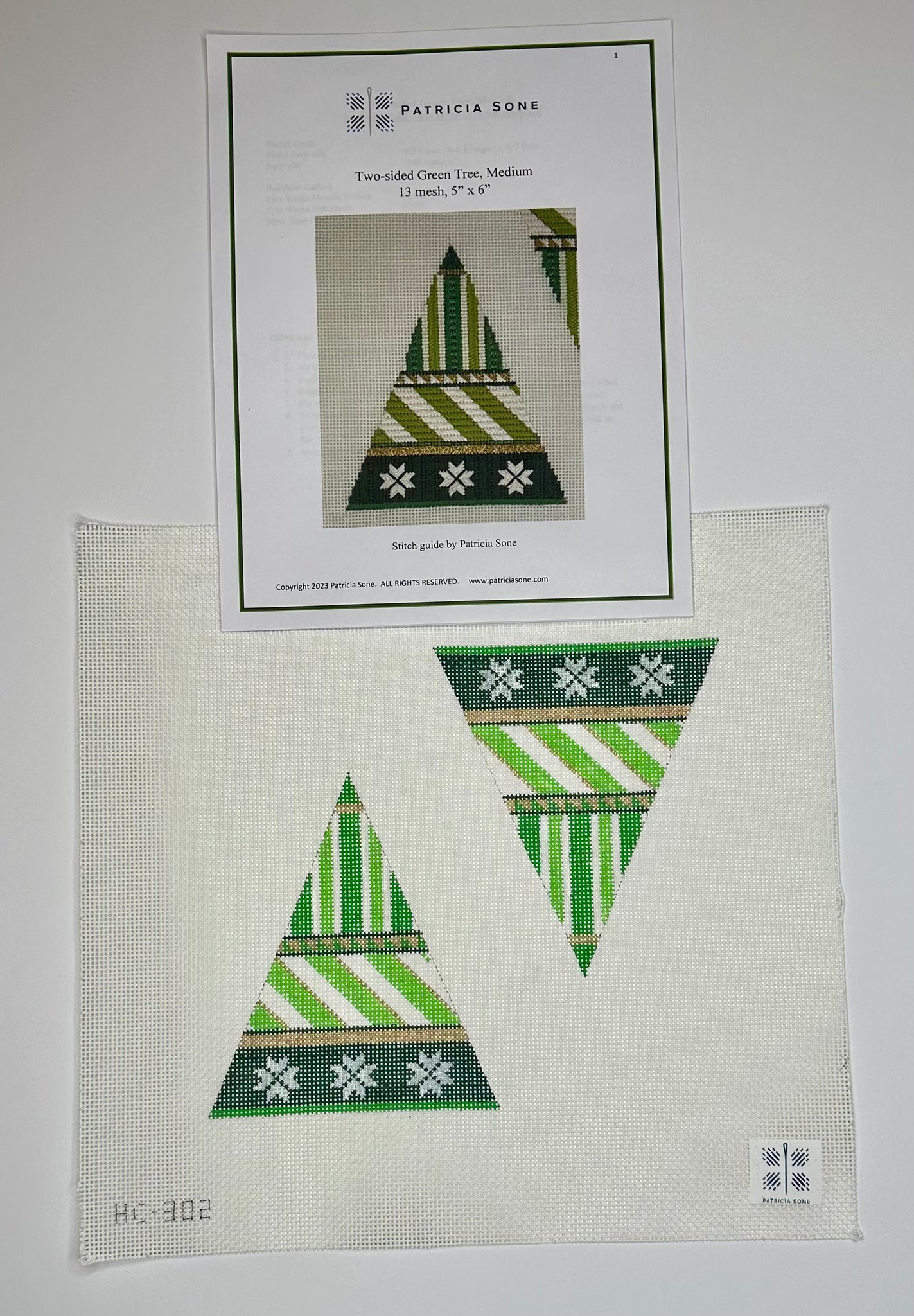Medium Green Tree, 2 sided with stitch guide