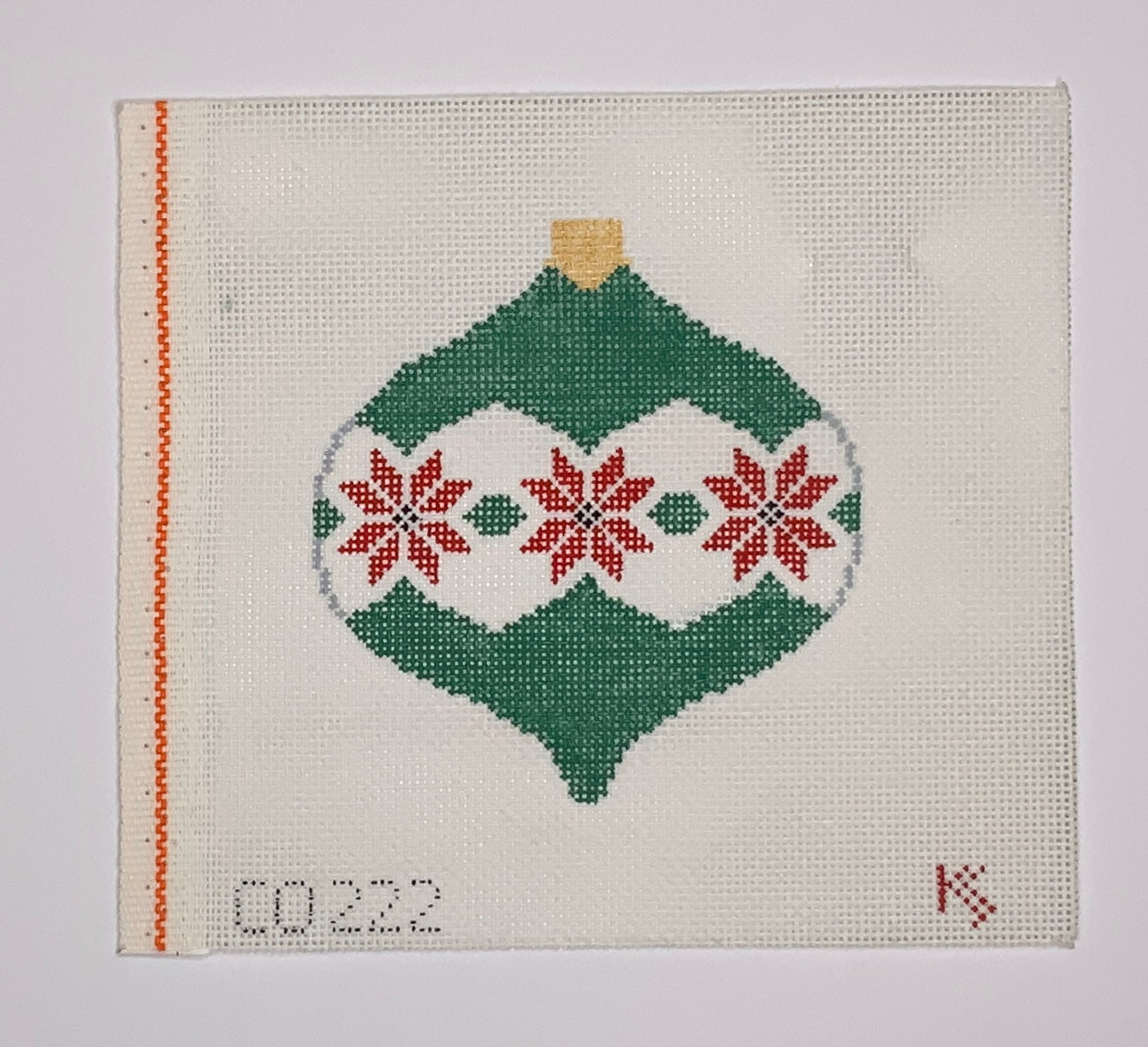 "Poinsettia Green Patterned Bauble" painted canvas by Kathy Schenkel