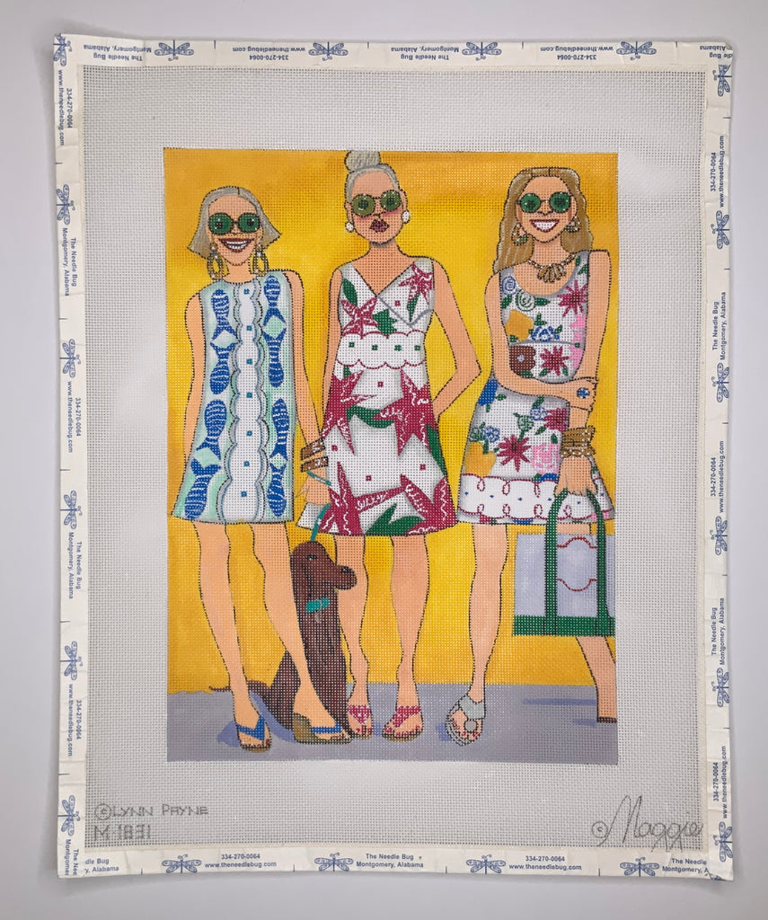 "Surfer Girls" painted canvas by Maggie Co, artwork by Lynn Payne