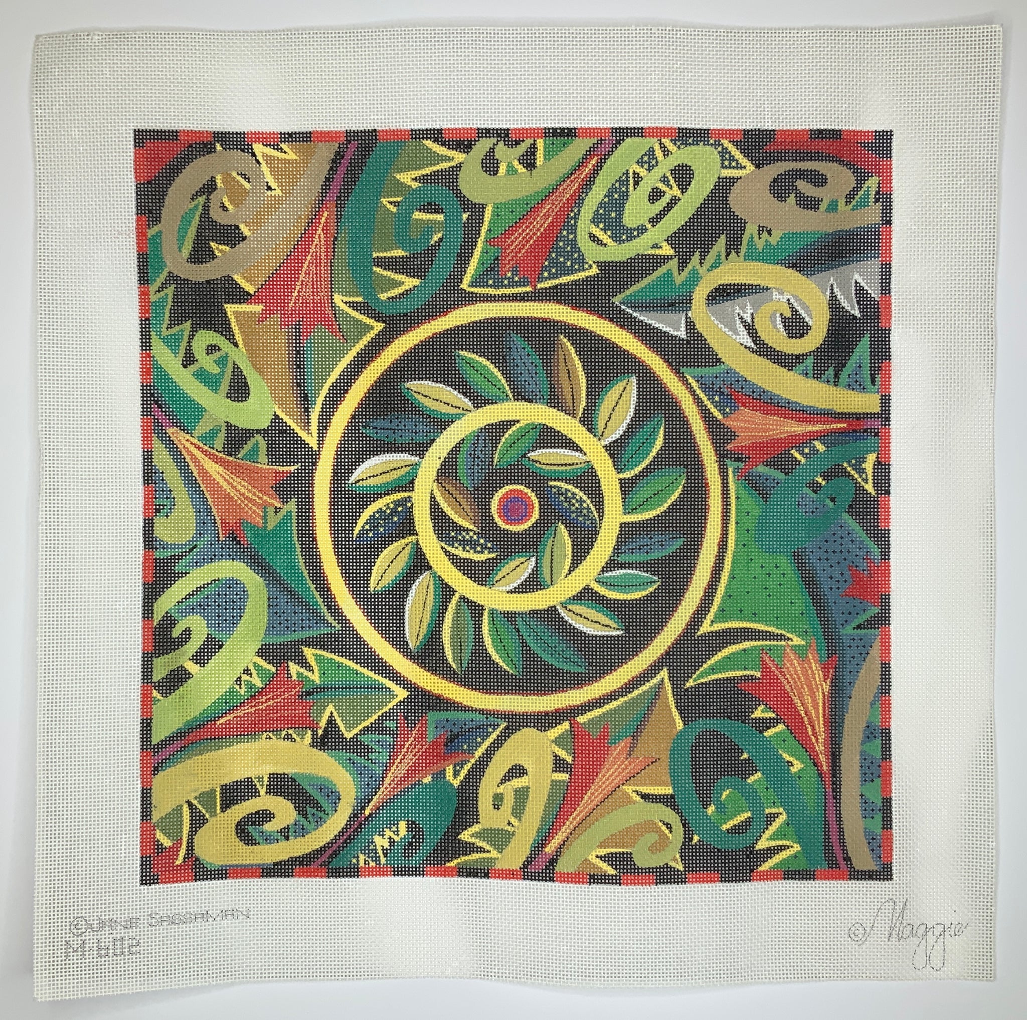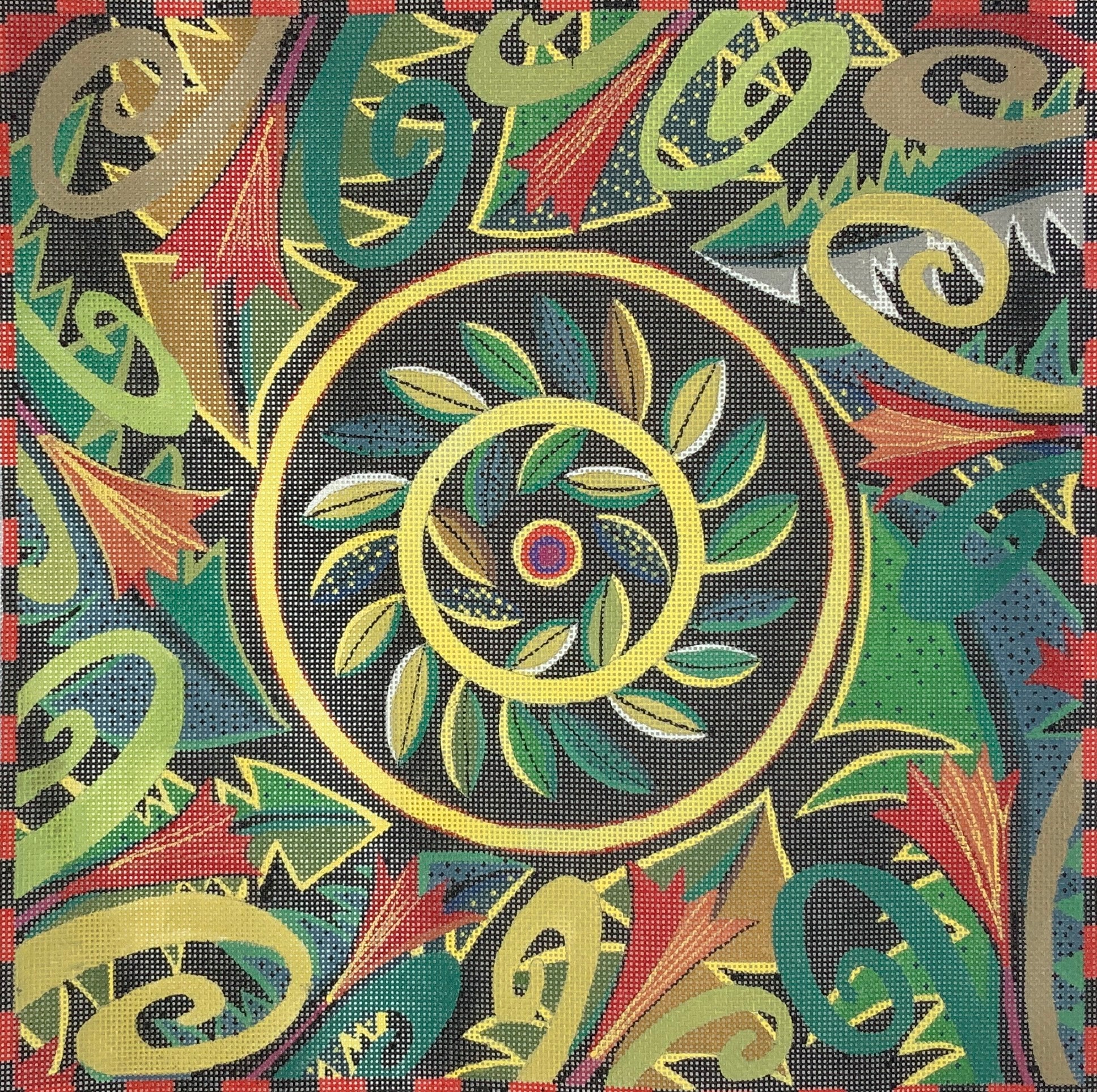 "Wreath" painted canvas by Maggie Co, artwork by Jane Sassaman
