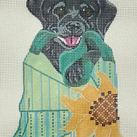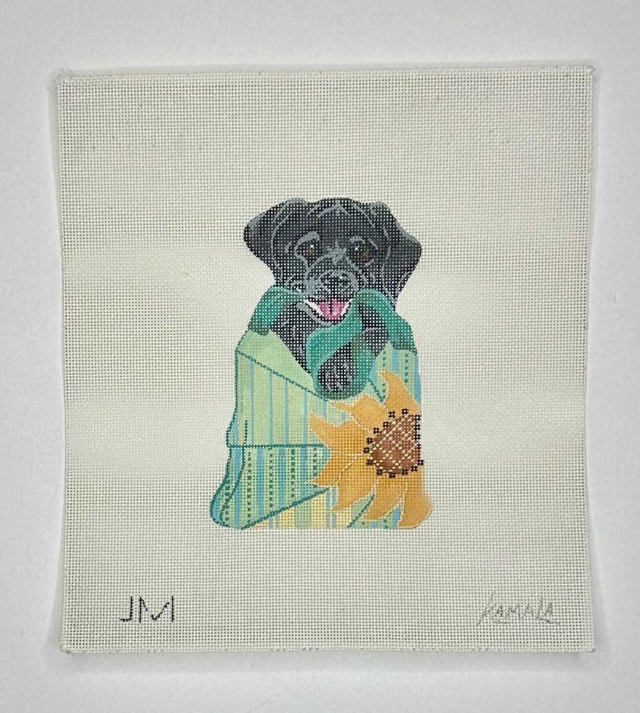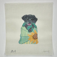 "Black Labrador in Purse" painted canvas by Julie Mar