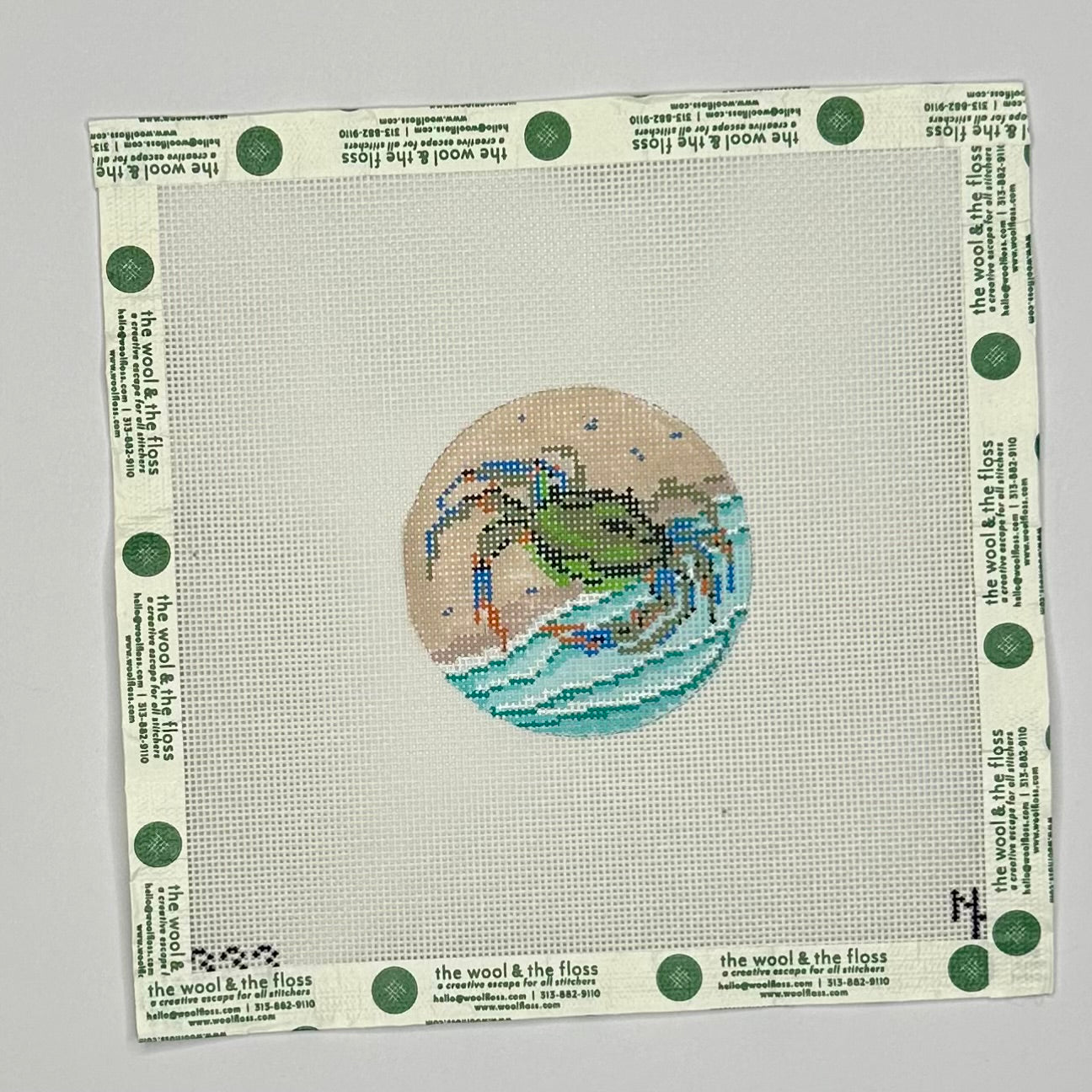 "Blue Crab Ornament" painted canvas by Needle Crossings