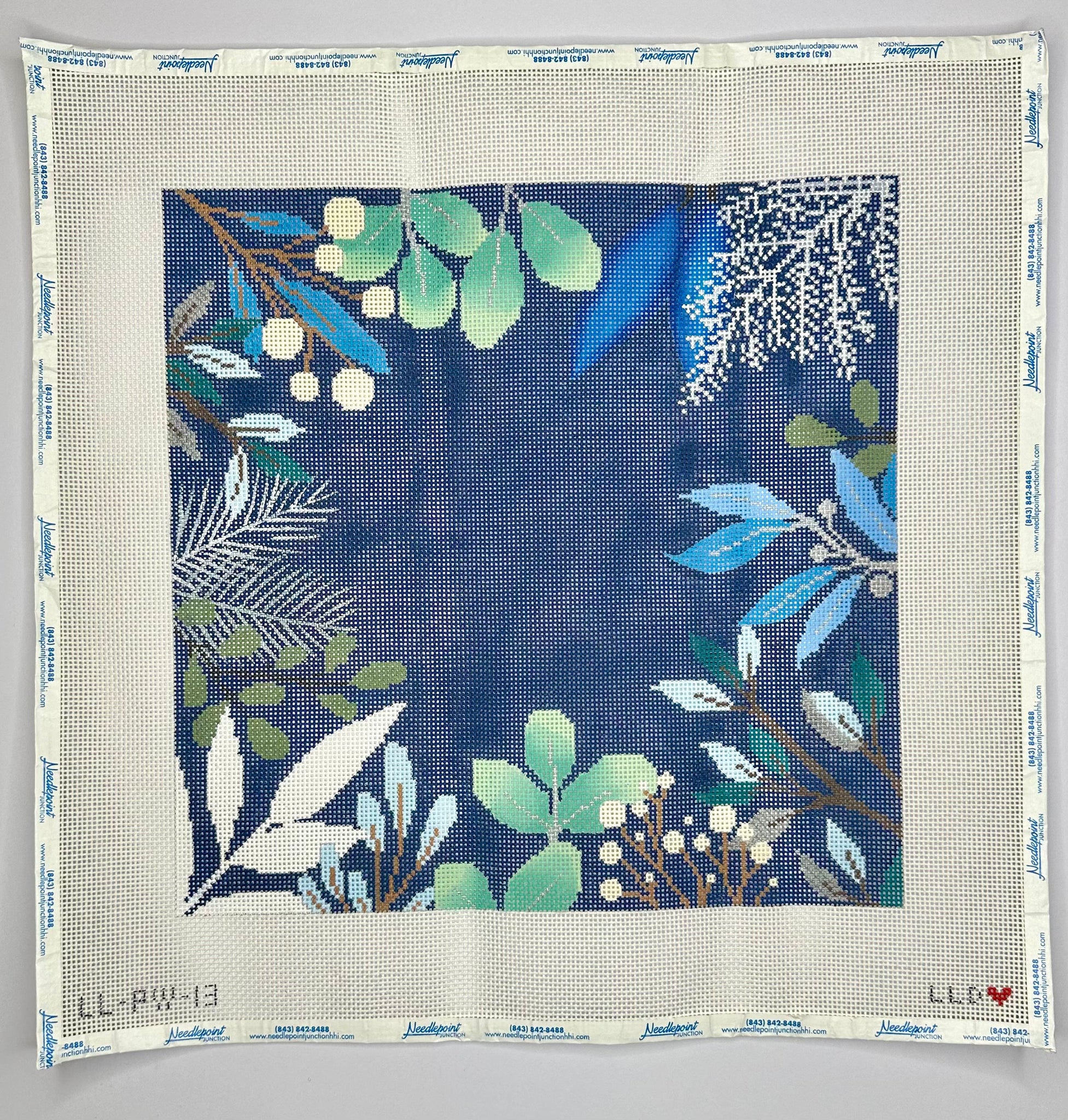 "Blue Winter Botanical Pillow" painted canvas by Laura Love Designs